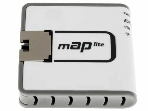 MikroTik mAP lite with 650Mhz CPU, 64MB RAM, 1xLAN, built-in Dual Chain 2.4Ghz 802.11bgn Dual Chain wireless with integrated antennas, RouterOS L4, plastic case, PSU