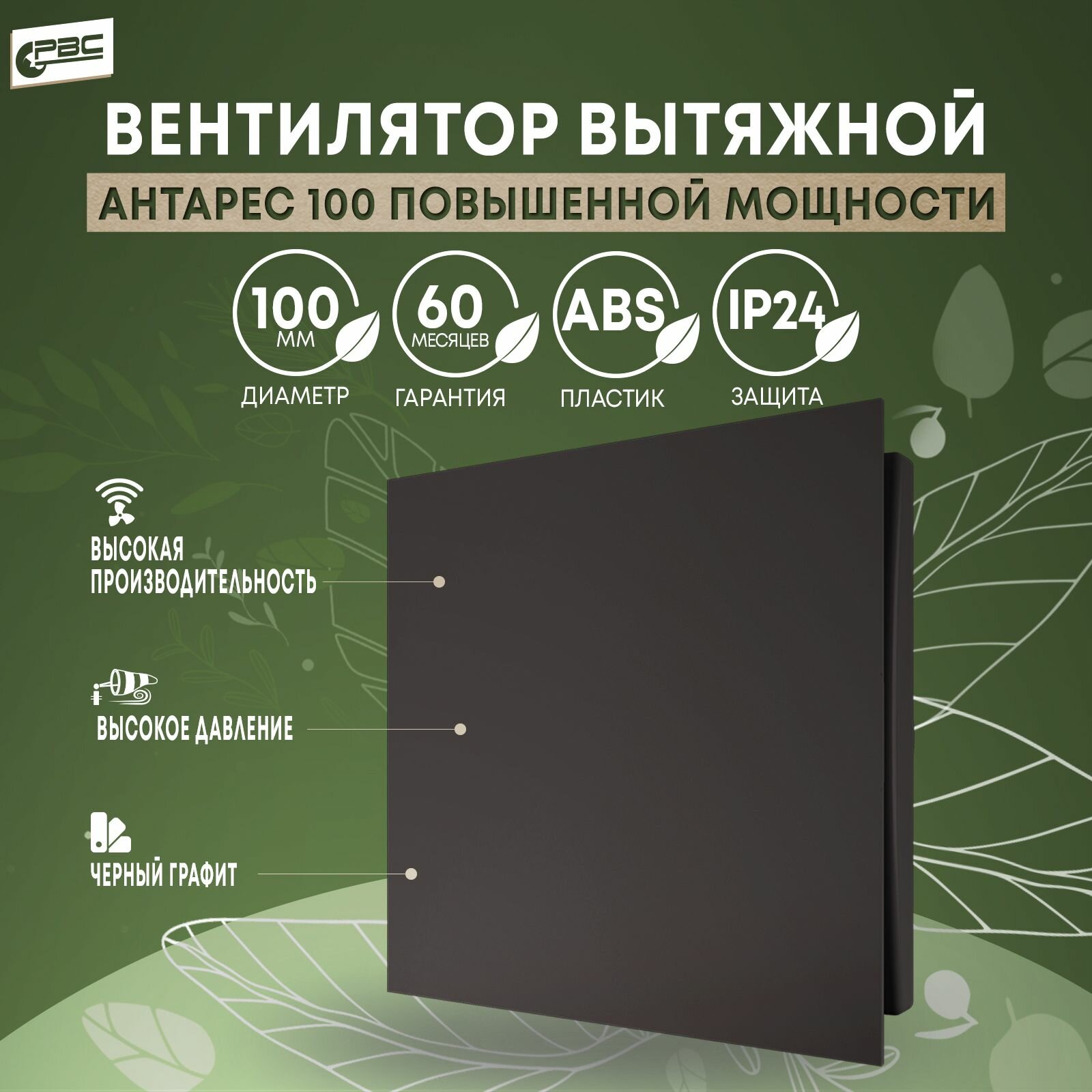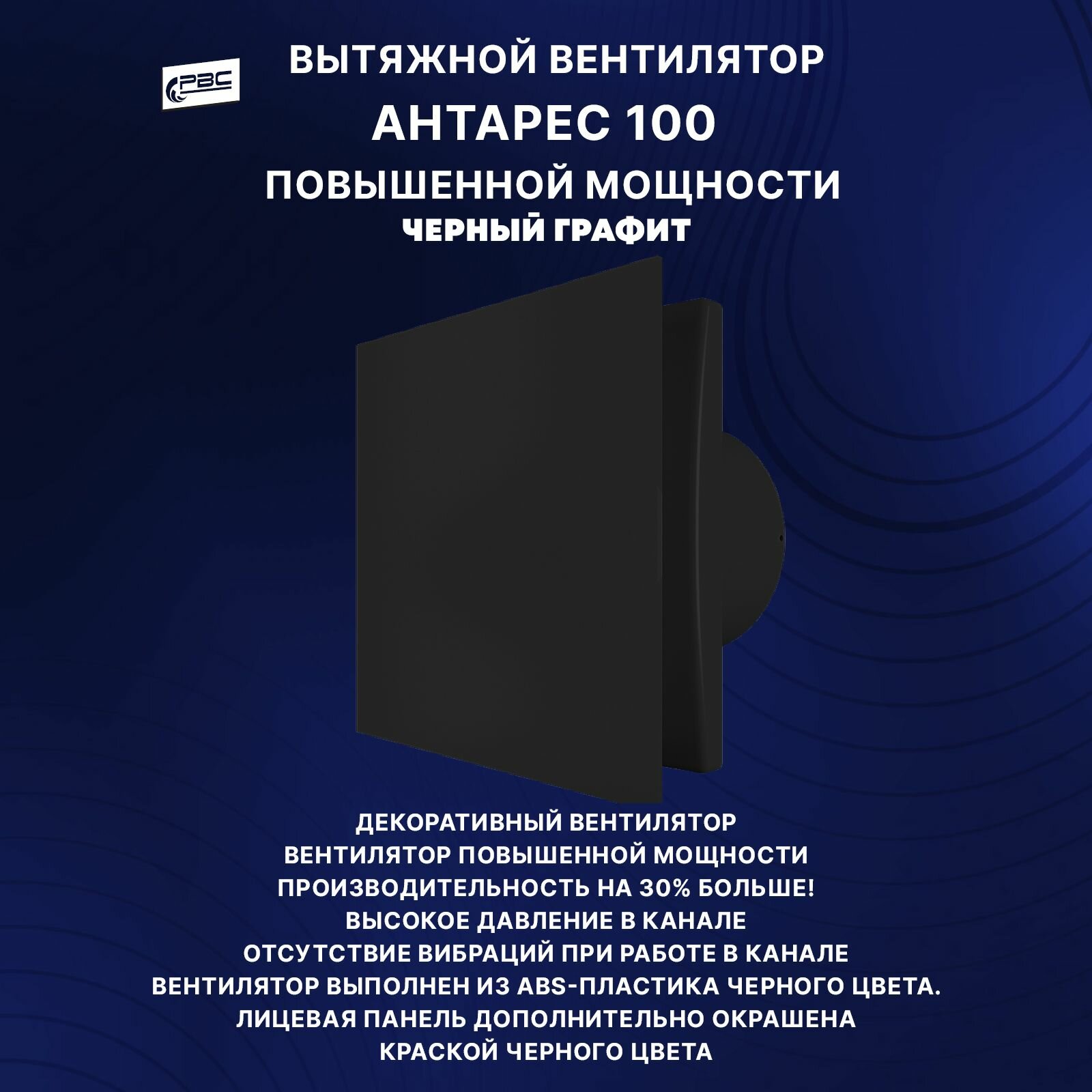 Вентилятор вытяжной с декоративной панелью РВС Антарес 100 Турбо (повышенной мощности), 16 Вт, 37 дБ, 116 м3/ч, черный графит