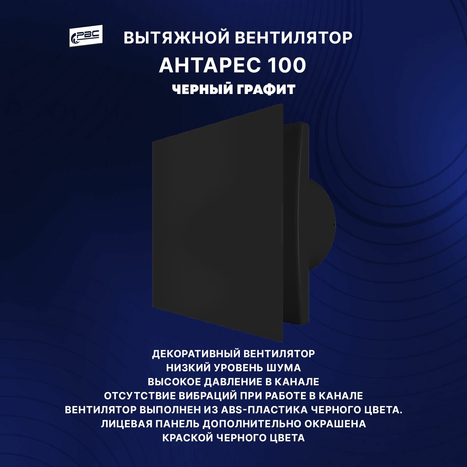 Вентилятор вытяжной Рвс 100 Антарес повышенной мощности, 16 Вт, 37 дБ, 116 м3/ч, черный графит