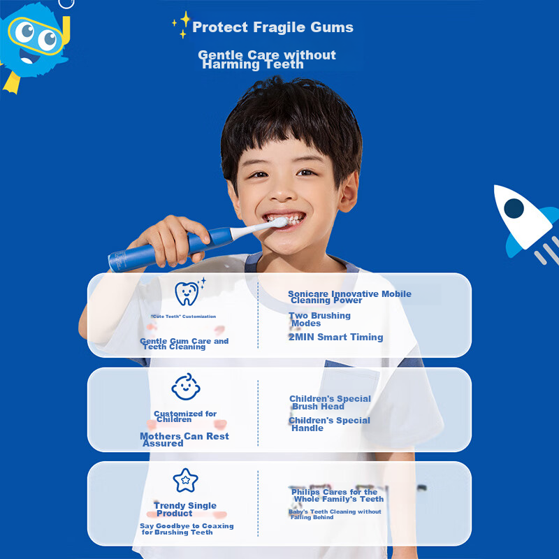 Детская электрическая зубная щетка Philips HX2472 автоматическая с мягкой щетиной многофункциональная перезаряжаемая.xz