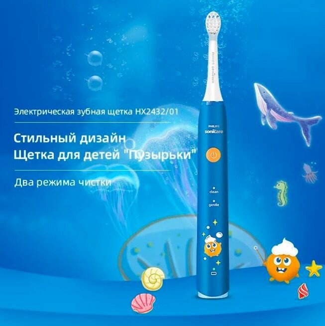 детская электрическая зубная щетка philips HX2432