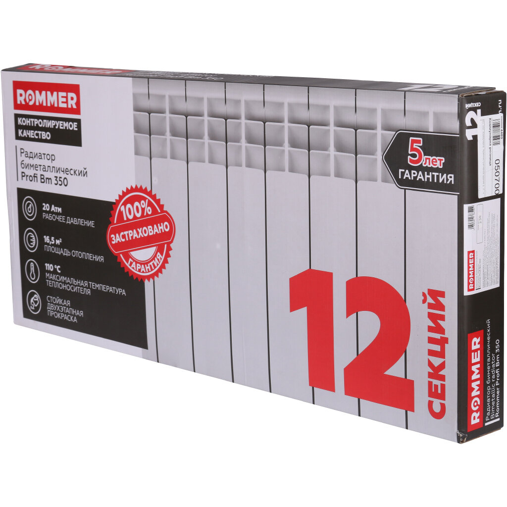 СохранитьROMMER Радиатор отопления биметаллические Profi BM 350, 12 секций интересное: