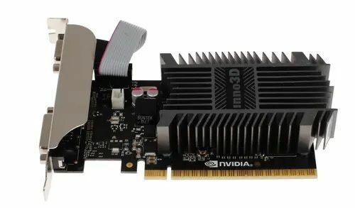 Купить Видеокарта INNO3D GeForce GT 710 Silent LP [N710-1SDV-E3BX] [PCI-E 2.0 2 ГБ GDDR3, 64 бит, DVI-D, HD