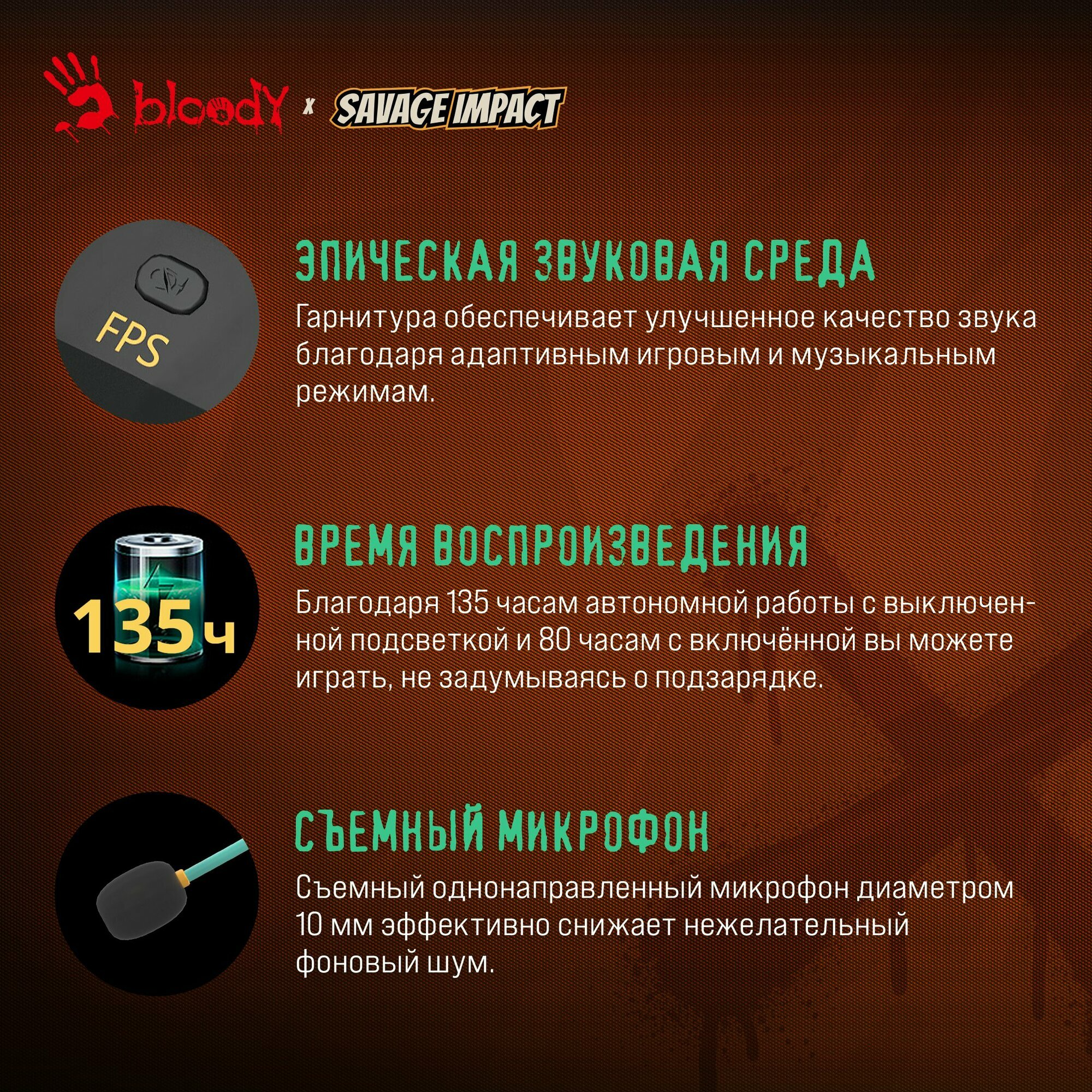 Гарнитура игровая A4TECH Bloody G573, для компьютера, мониторные, черный