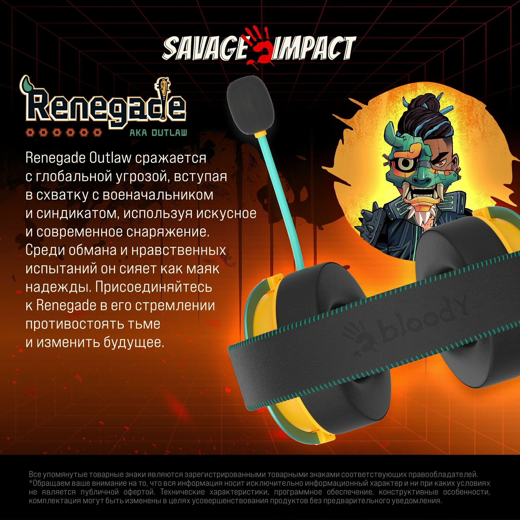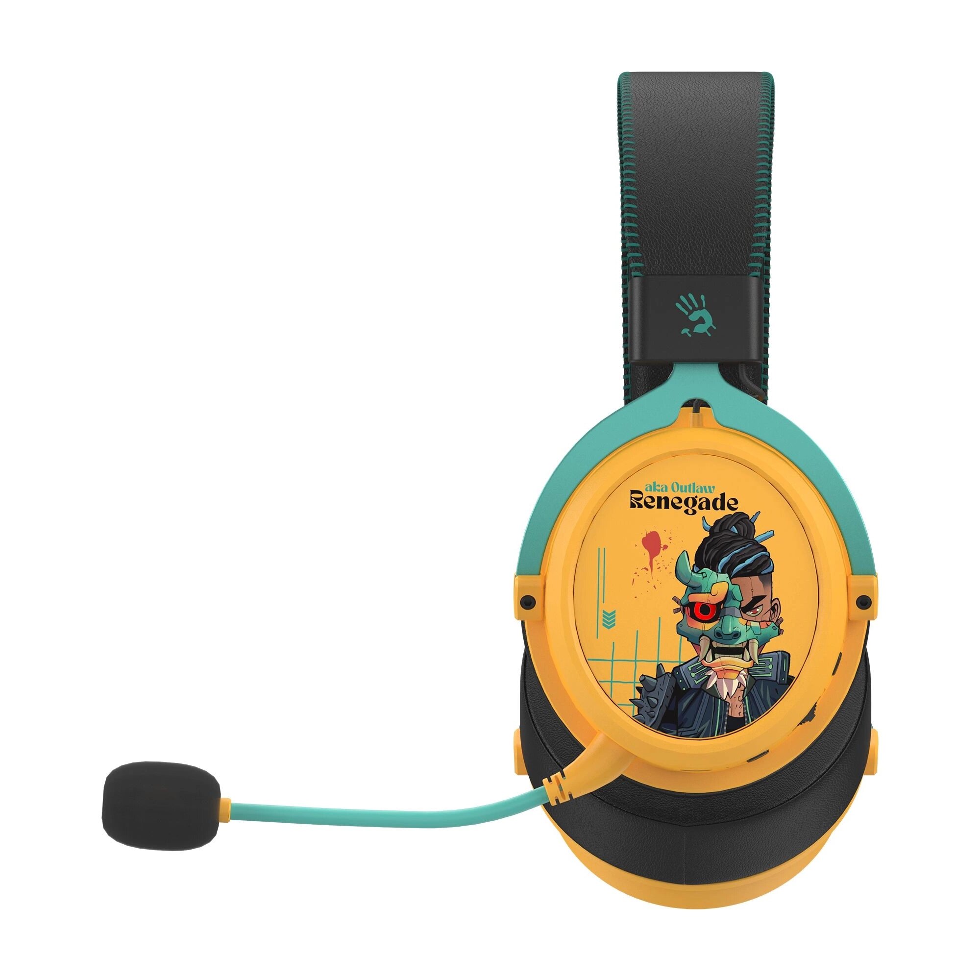 Купить Гарнитура игровая A4TECH Bloody MR595 Renegade, для компьютера и игровых консолей, мониторные, Bluetooth/радио, черный / рисунок