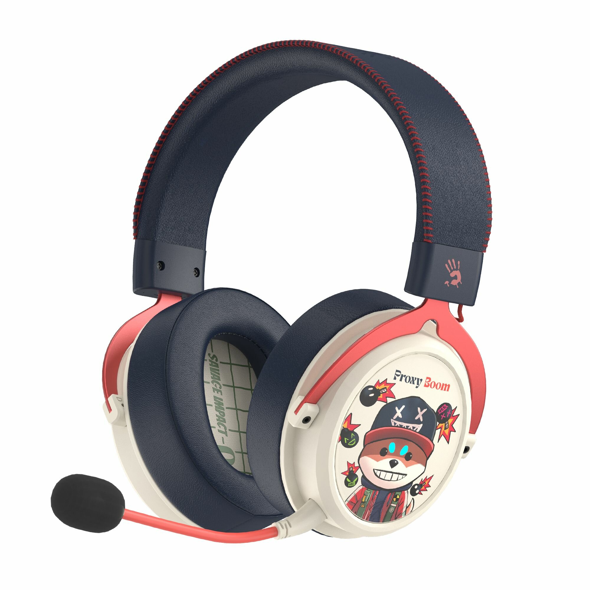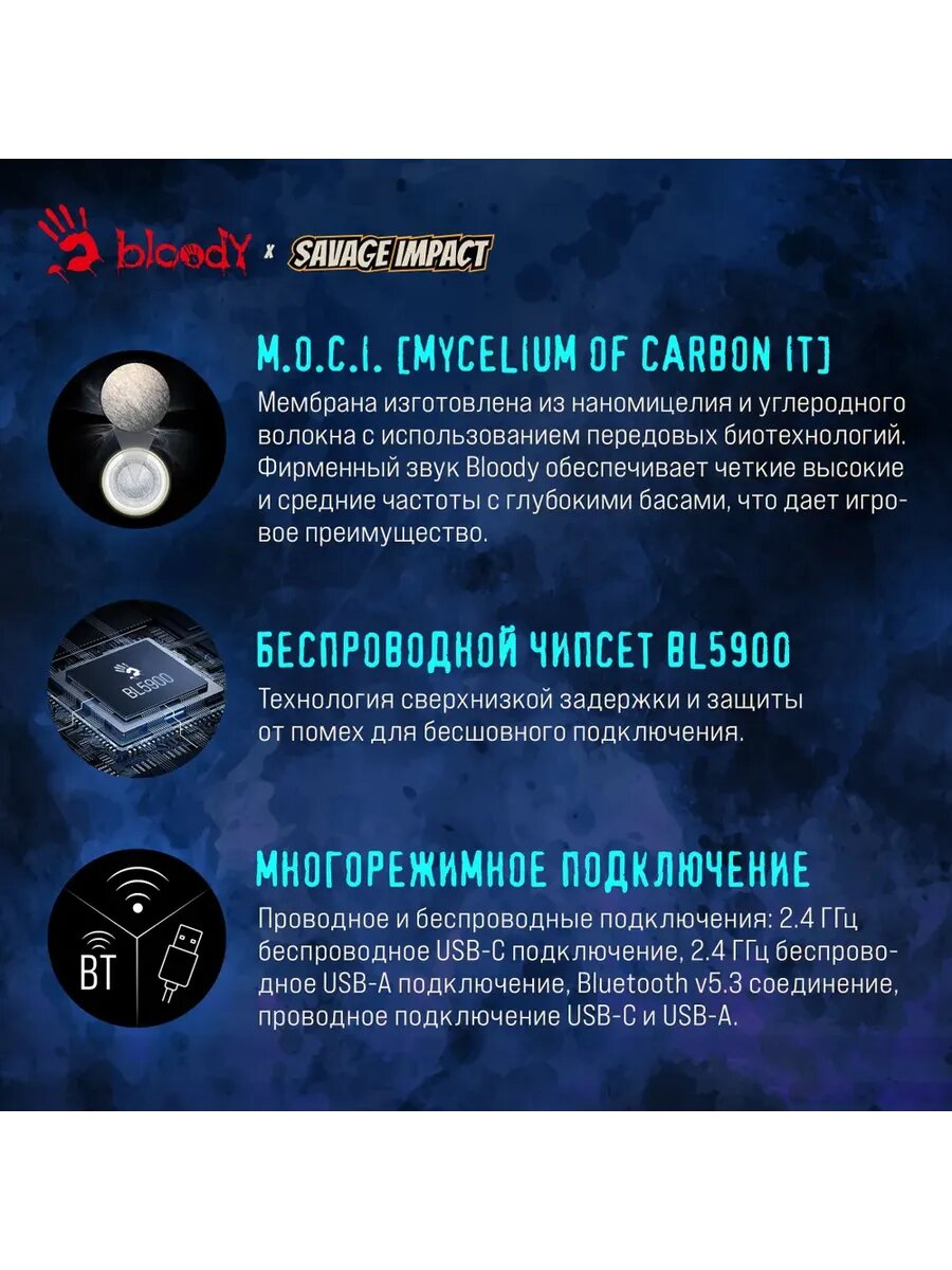 Гарнитура игровая A4TECH Bloody MR595 Renegade, для компьютера и игровых консолей, мониторные, Bluetooth/радио, черный / рисунок
