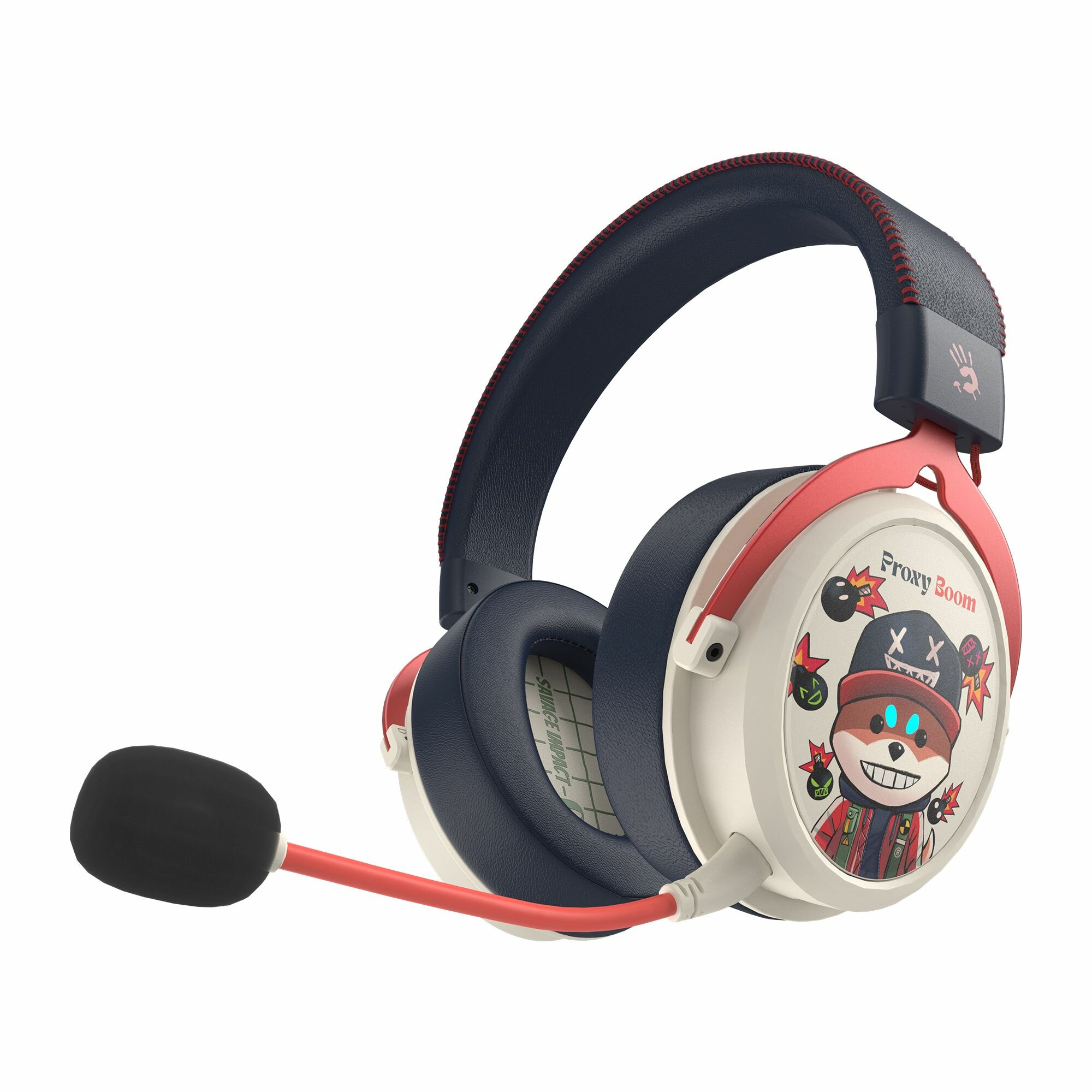Купить Гарнитура игровая A4TECH Bloody MR595 Proxy Boom, для компьютера и игровых консолей, мониторные, Bluetooth/радио, бежевый / черный