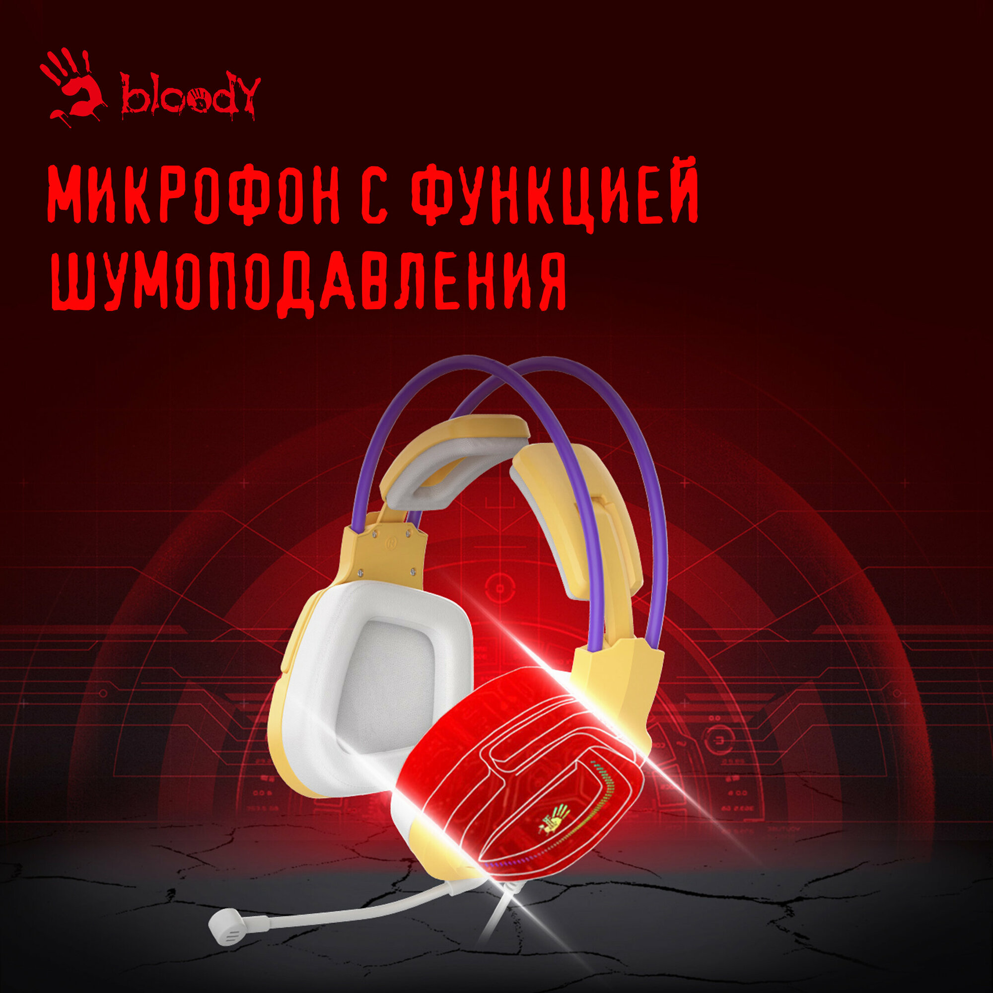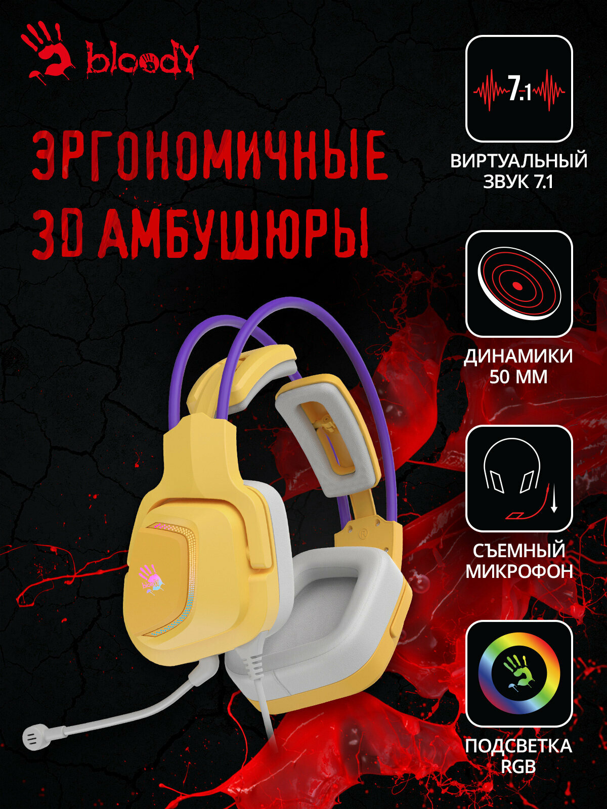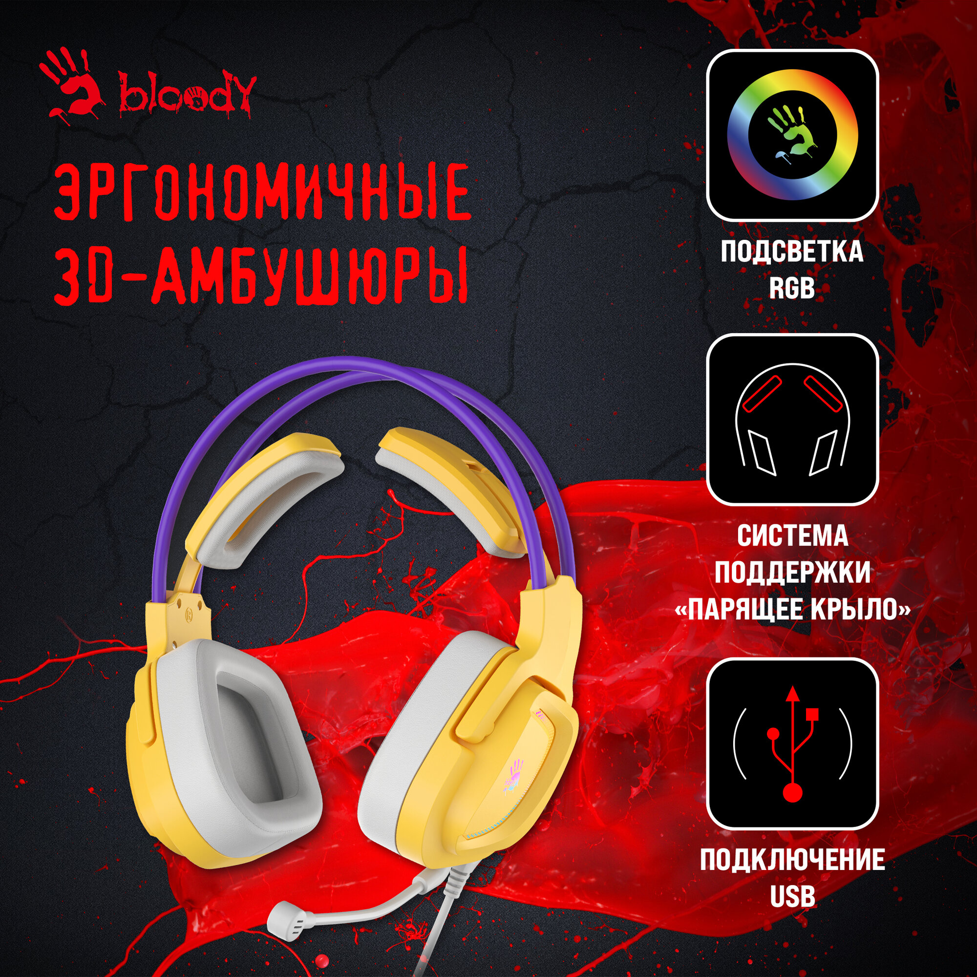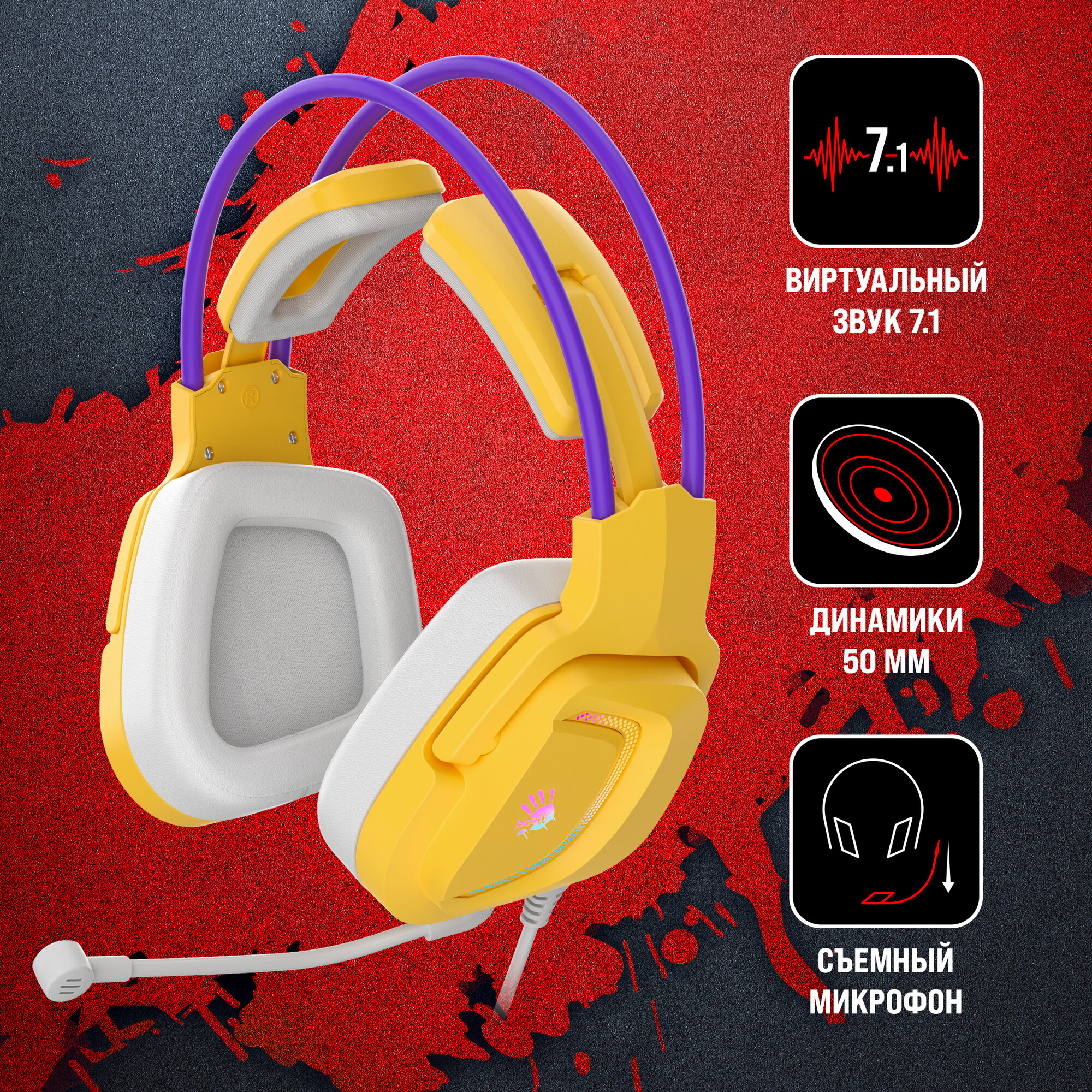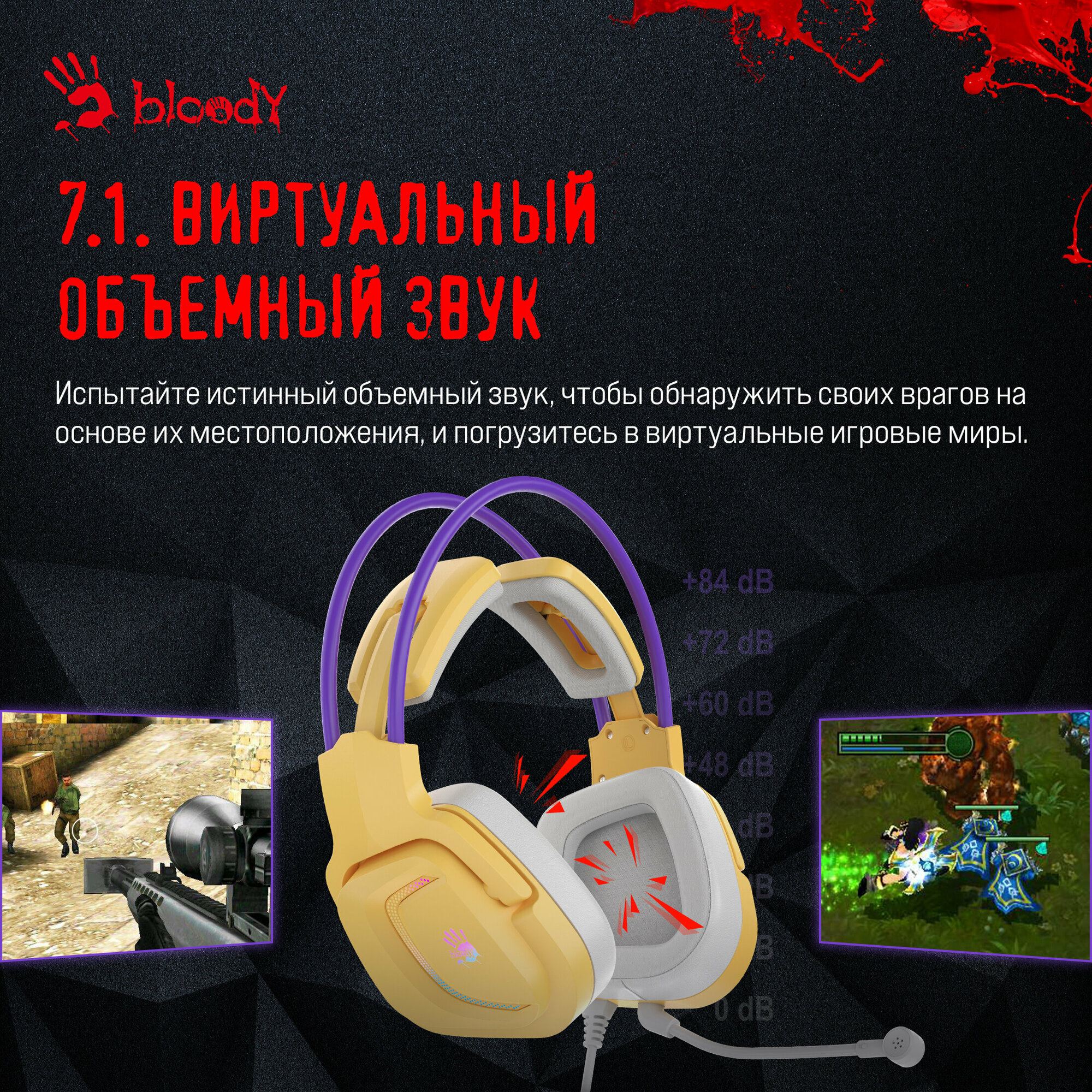 Купить Гарнитура игровая A4TECH Bloody G575, для компьютера, мониторные, проводные, желтый / фиолетовый [g575 /royal violet/ usb]