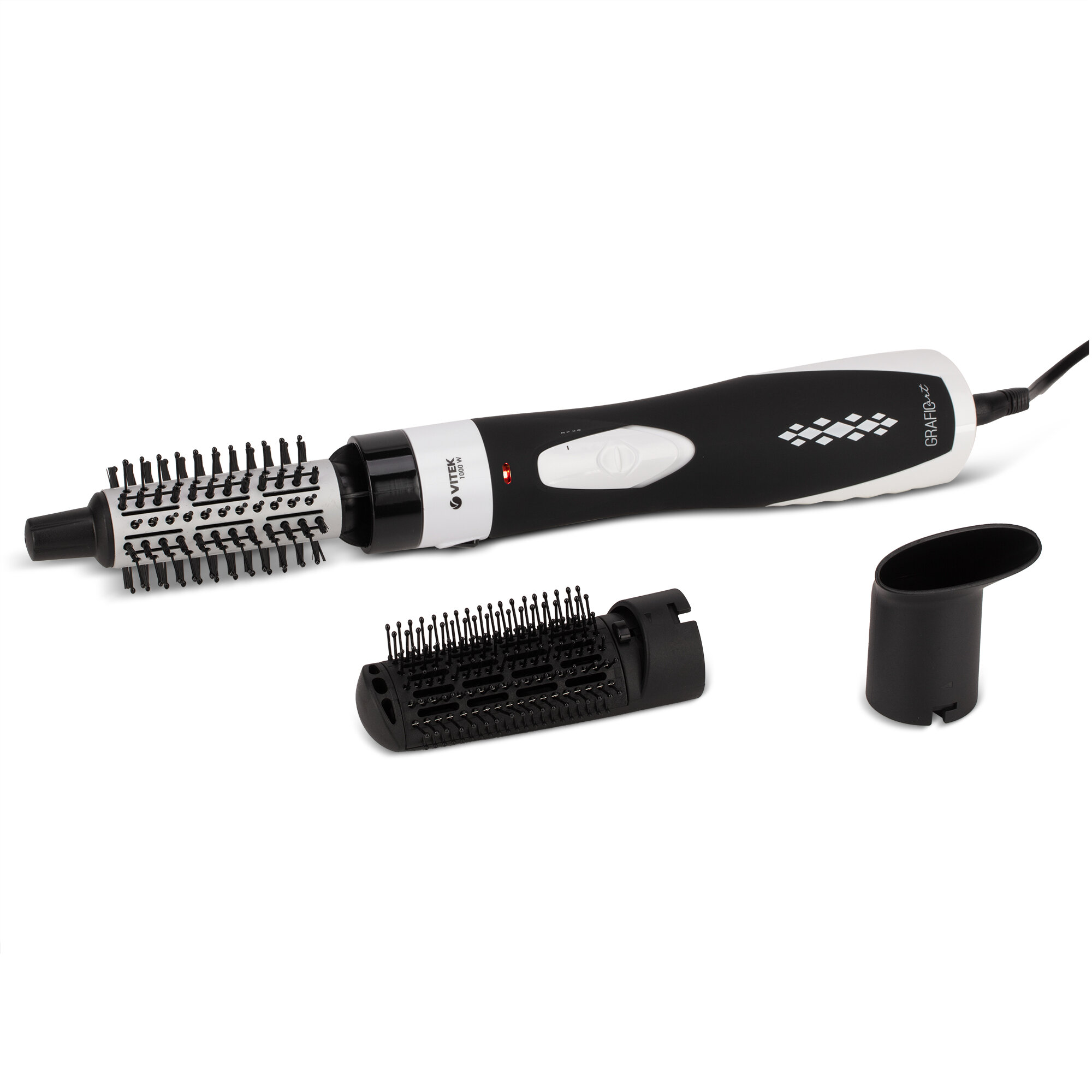 Фен-щетка VITEK VT-2510 Graphic Art BW,мощность 1000Вт,диаметр-40мм,3 насадки,ионизация