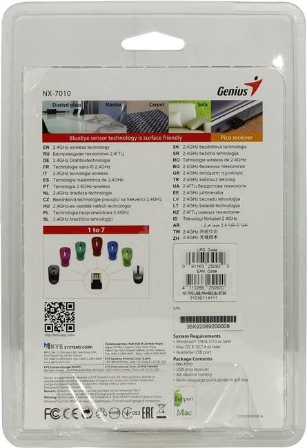 Мышь беспроводная Genius NX-7010 (31030018403), SmartGenius: 800, 1200, 1600 DPI, микроприемник USB