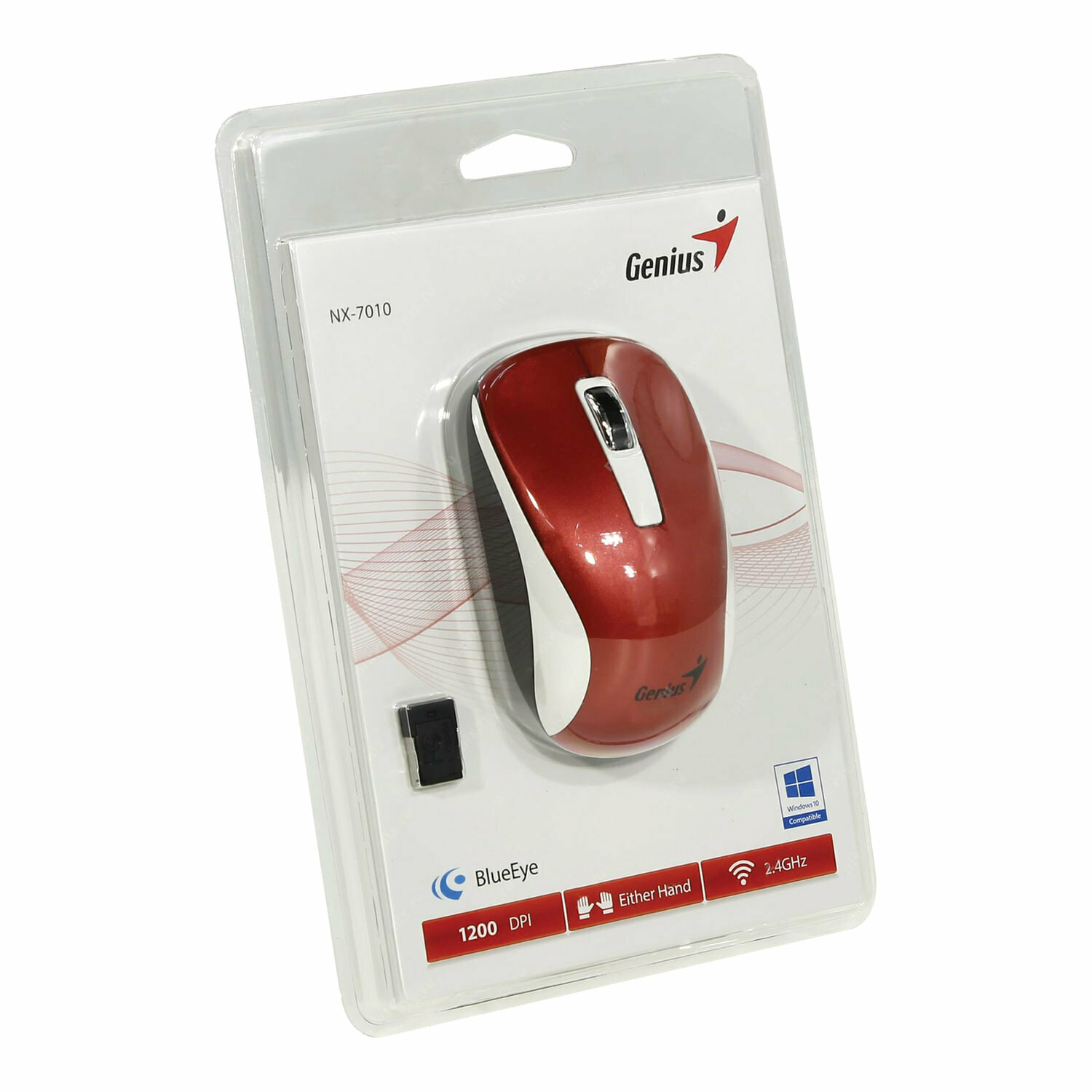 Мышь Genius беспроводная NX-7010 (белый+красный металлик, BlueEye 1200dpi)