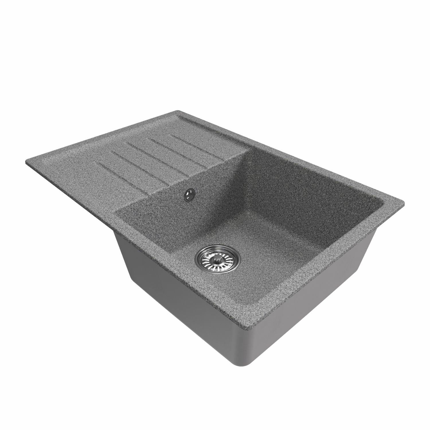 Мойка для кухни из искусственного мрамора 75х50, прямоугольная, с крылом, с сифоном, MIXLINE ML-GM 19, графит