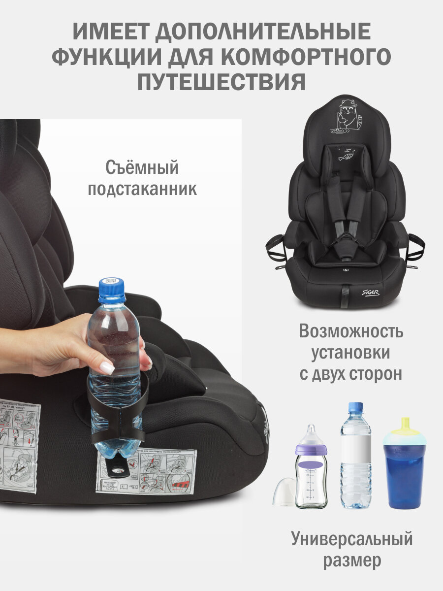 Автокресло детское Siger Стар ISOFIX LUX от 9 до 36 кг, с подстаканником, цвет черный кот интересное: