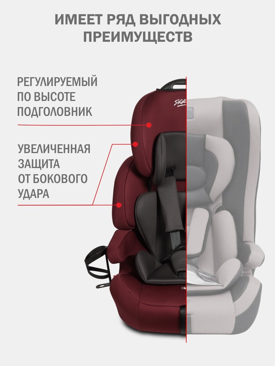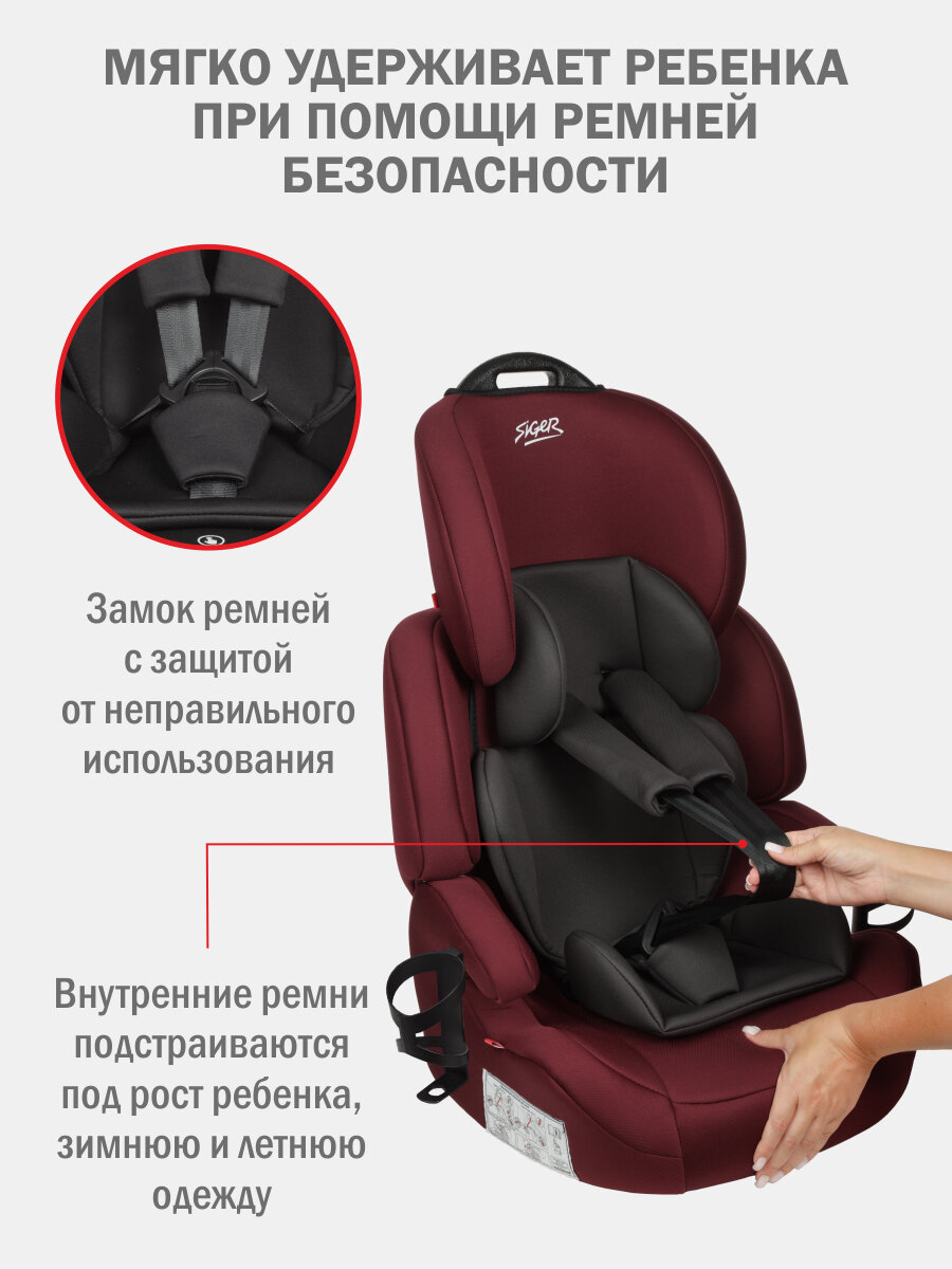 Автокресло детское Siger Стар ISOFIX LUX от 9 до 36 кг, с подстаканником, цвет вишня интересное: