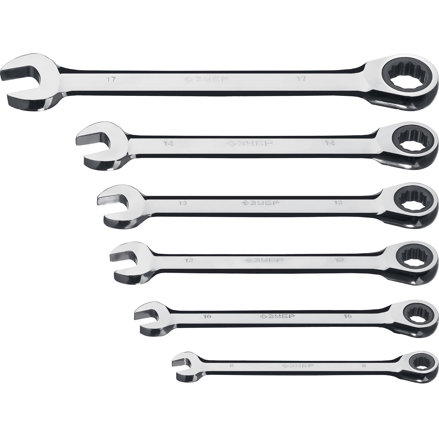 Набор комбинированных трещоточных ключей ЗУБР 6шт, 8-17мм 27074-H6_z01