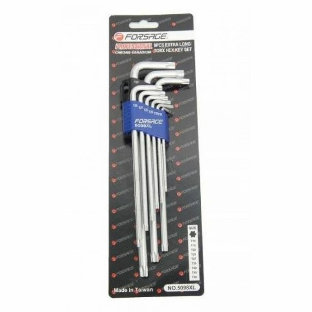 Набор ключей TORX, Г-образных экстра длинных, 9 пр: Т10, Т15, Т20, Т25, Т27, Т30, Т40, Т45, Т50, в пластиковом держателе, F5098XL FORSAGE F-5098XL