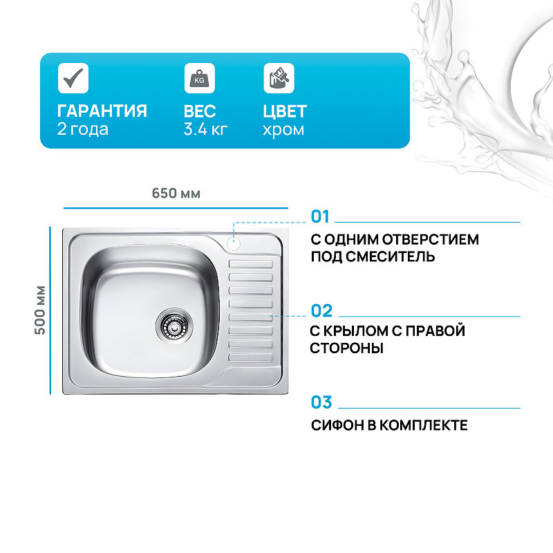 | Ширина мойки | 65 см |