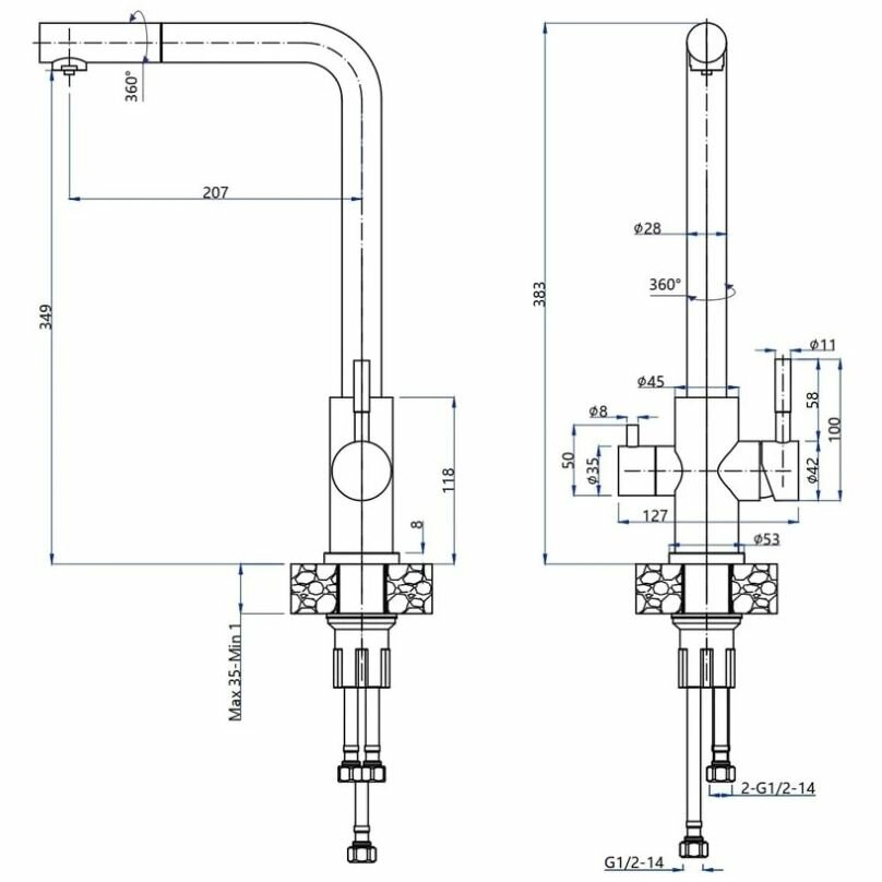 GRANFEST Смеситель для кухни боковой D-35мм топаз арт.