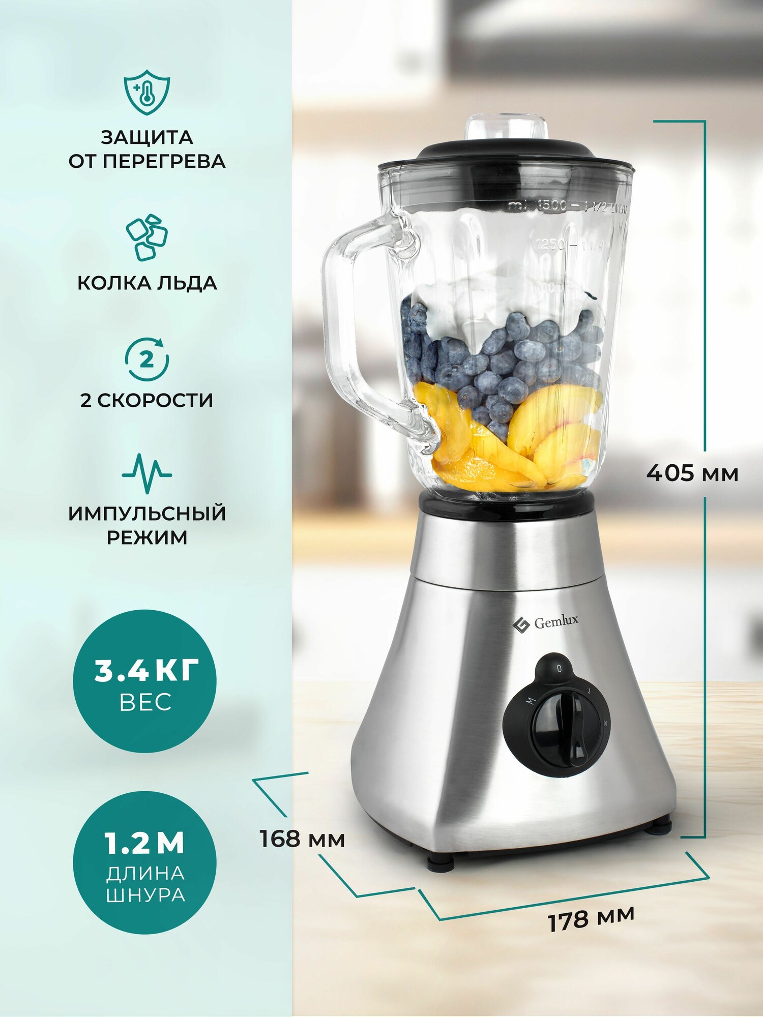 Блендер GEMLUX GL-BL500G для смузи и коктейлей стационарный с чашей 1.5 л