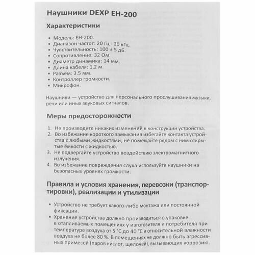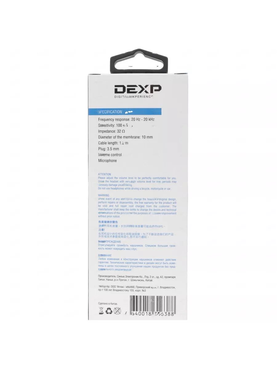 Проводная гарнитура DEXP EH-200 белый... интересное: