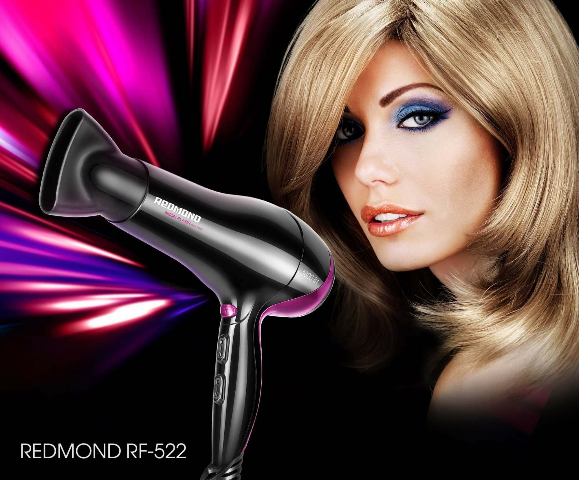 Фен REDMOND RF-522, 1800Вт, черный и фиолетовый