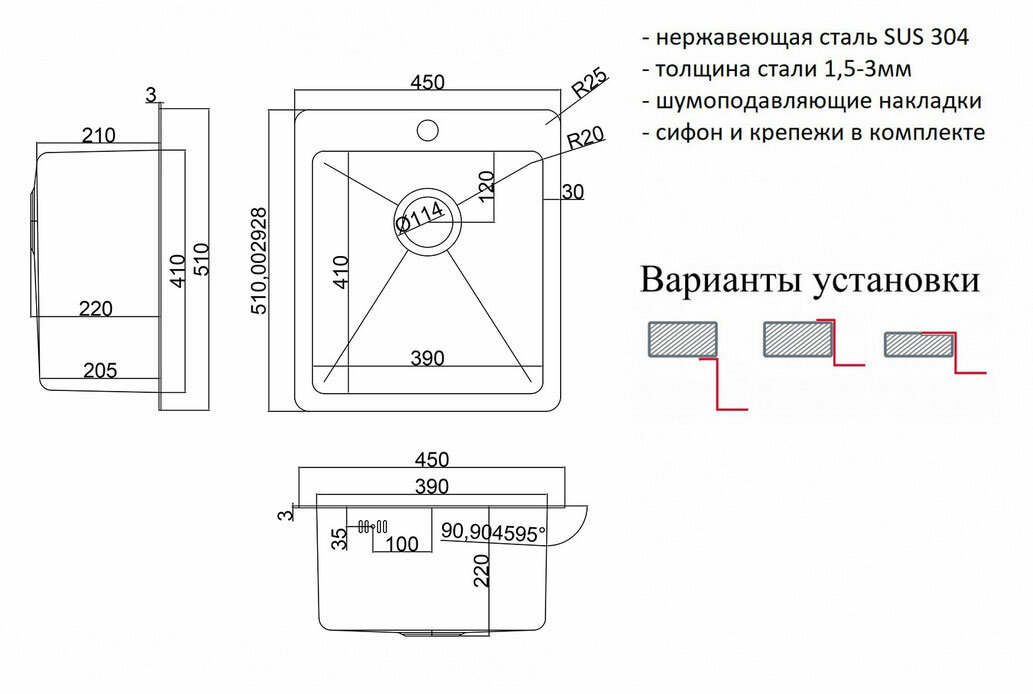 | Плюсы: | Мойка сделана из толстого металла |