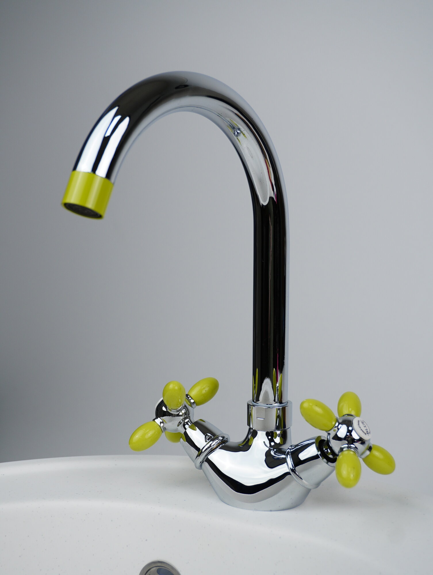 Смеситель д/кухни с высоким изливом, цветные ручки, аэратор - желтый, хром, Potato (Китай), арт P4471-10