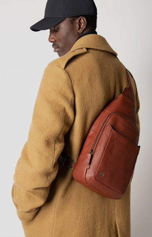 Рюкзак слинг Piquadro Blue Square коричневый, натур.кожа, 37x20x10 см