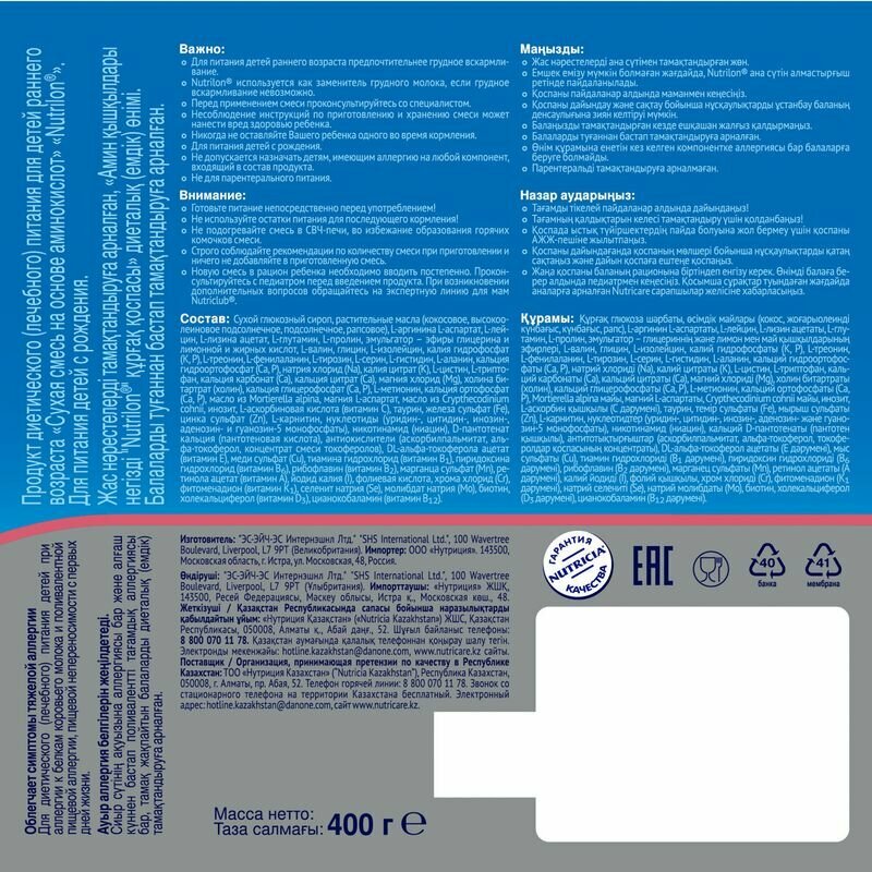 Смесь детская сухая Nutrilon Аминокислоты Syneo 400г c 0 месяцев 400Г интересное:
