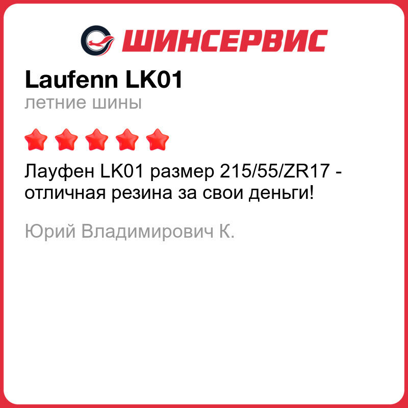 235/45/17 245/45/17 255/40/19 Остались приятно удивлены после переобувки. Ранее все три автомобиля эксплуатировались летом на шинах Nokian hakka black. После перехода на Laufenn остались довольны больше чем шинами nokian. Посмотрим на изностойкость. Могу смело рекомендовать как замену многим А брендам. Соотношение цена/качество - лучшее на рынке. |