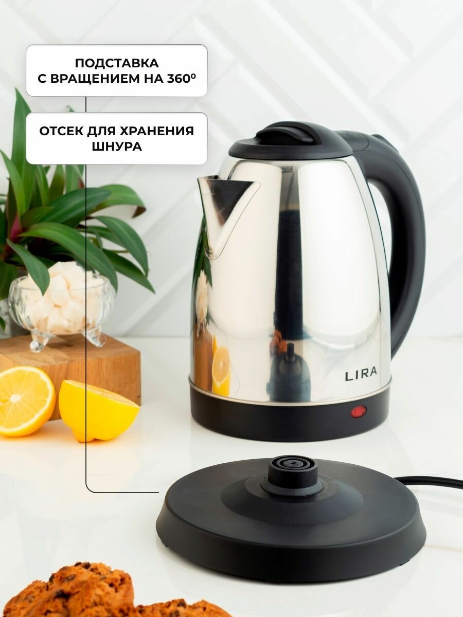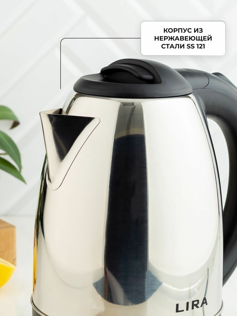 LIRA Электрический чайник LR 0109, серебристый, черный, 1800 мл