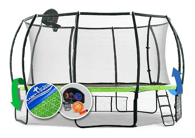 | Плюсы: | Размер, отличное натяжение прыжкового полотна, защита. |