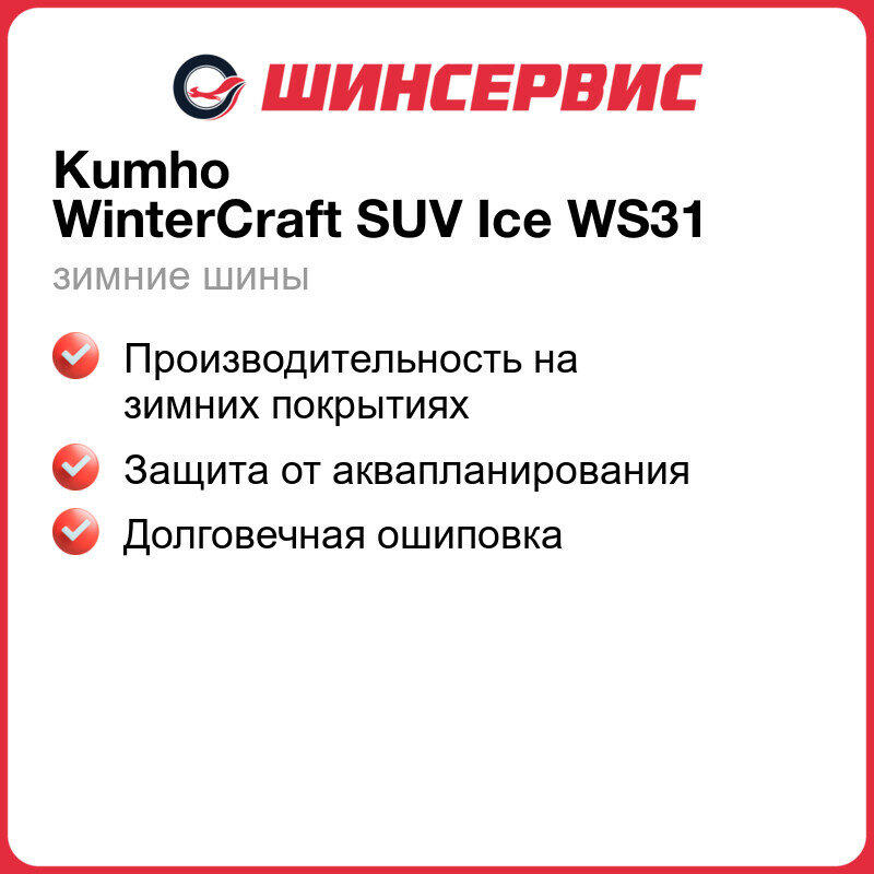 Шина Kumho(Кумхо) WinterCraft SUV Ice WS31 265/50 R20 111T зимняя шипованная