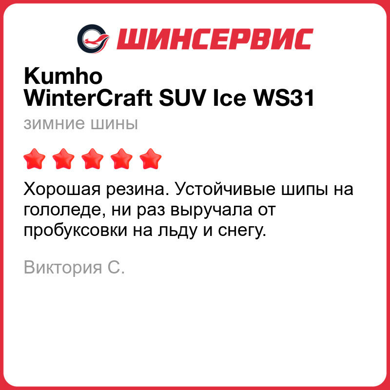 Ниже Вы можете прочитать отзывы на Kumho WinterCraft SUV Ice WS31 225/70 R16 107T зимняя, ознакомится с подробными характеристиками, посмотреть интересные обзоры и фотографии на Kumho WinterCraft SUV Ice WS31 225/70 R16 107T зимняя.