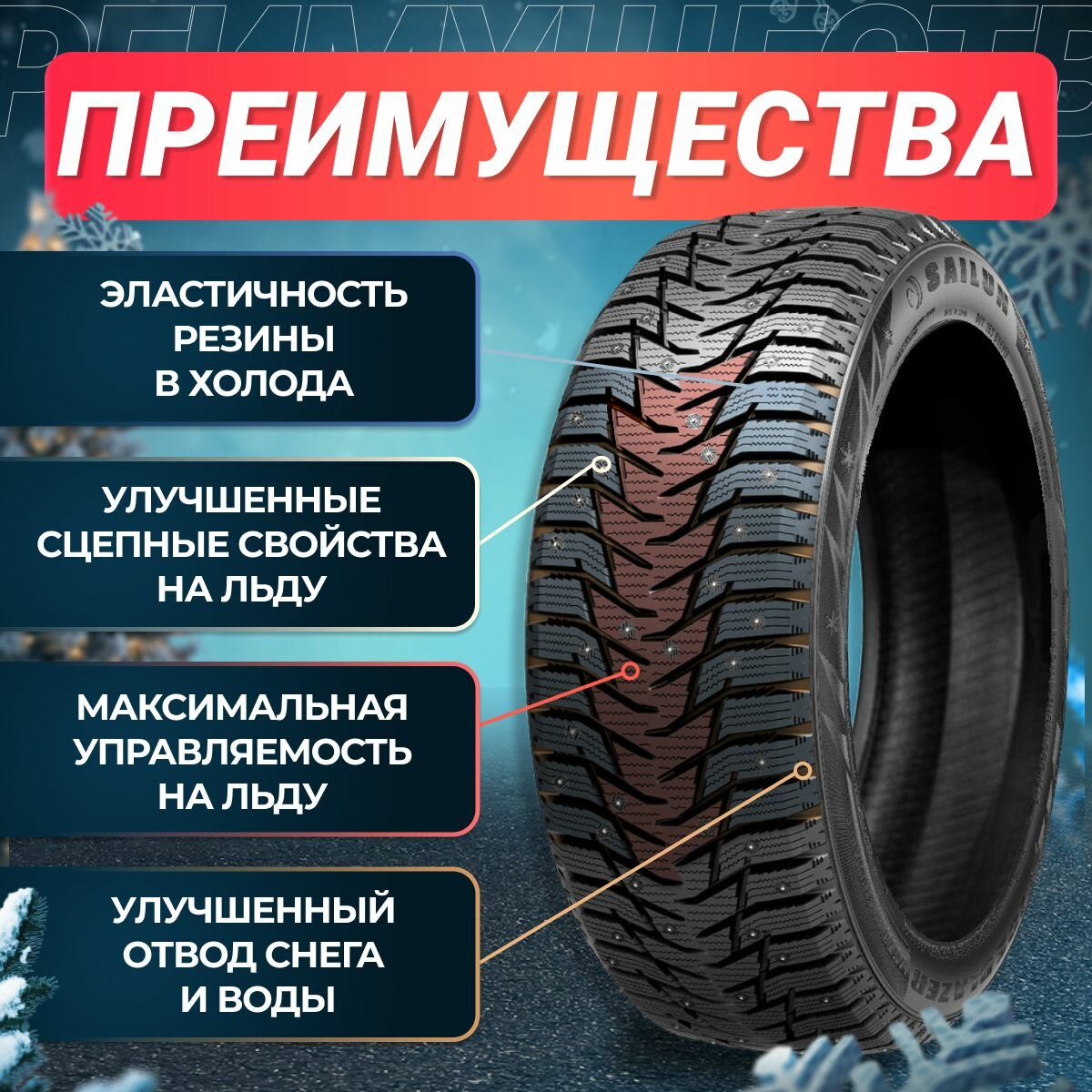 | Отзыв: | Купил пару шин на ведущие колеса, прошлая зима на кама-евро, сайлуны, думаю потише будут, удалось уже поездить и по ледку и по рыхлому снегу, из снега выгребают хорошо, по льду спасет только скоростной режим, ни какие шипы не вывезут. Работаю в такси, шины очень понравились |