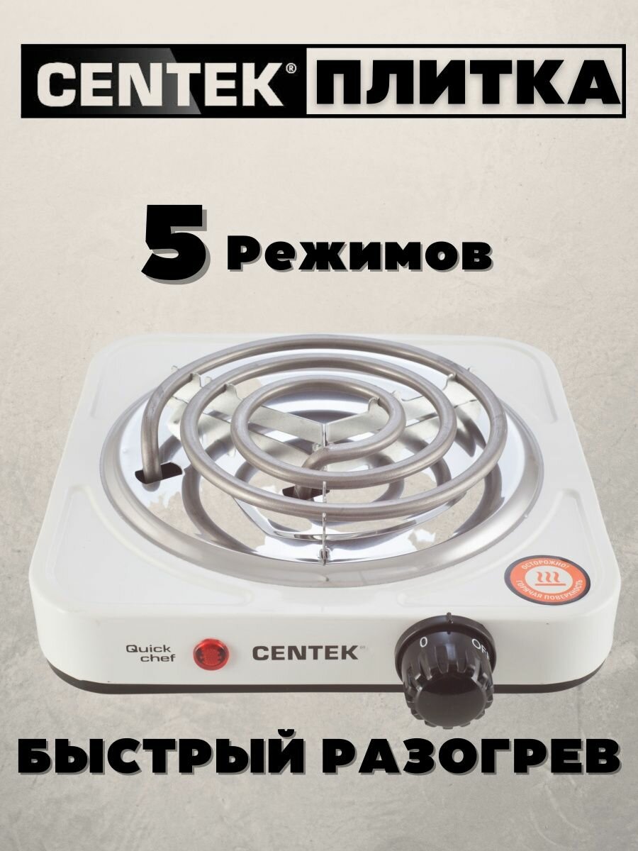 СохранитьНастольная электрическая плита CENTEK CT-1508, 1000Вт, 1 конфорка, 5 режимов нагрева, интересное: