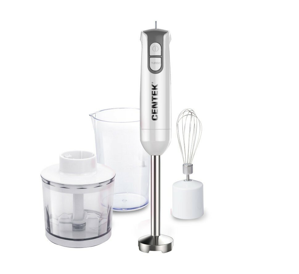 Блендер Centek CT-1336, погружной, 800 Вт, 0.3/0.6 л, 2 скорости, бело-серый