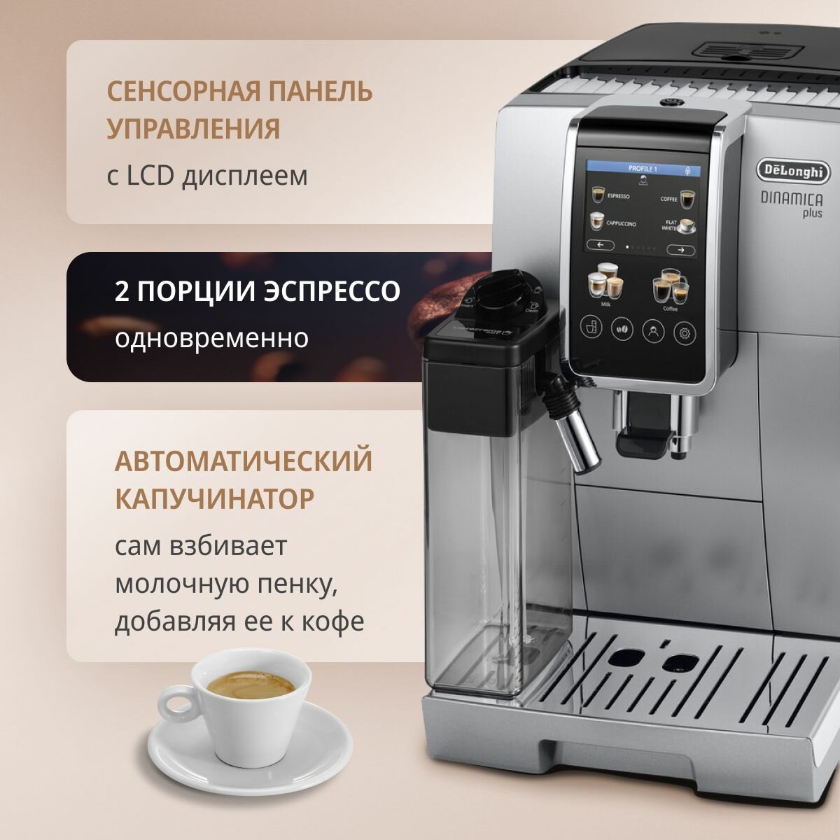 | Плюсы: | Автоматически делает капучино и латте |
