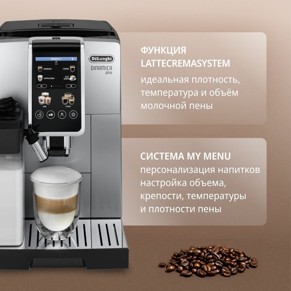 Кофемашина автоматическая Delonghi Dinamica Plus ECAM380.85.SB серебристый, черный