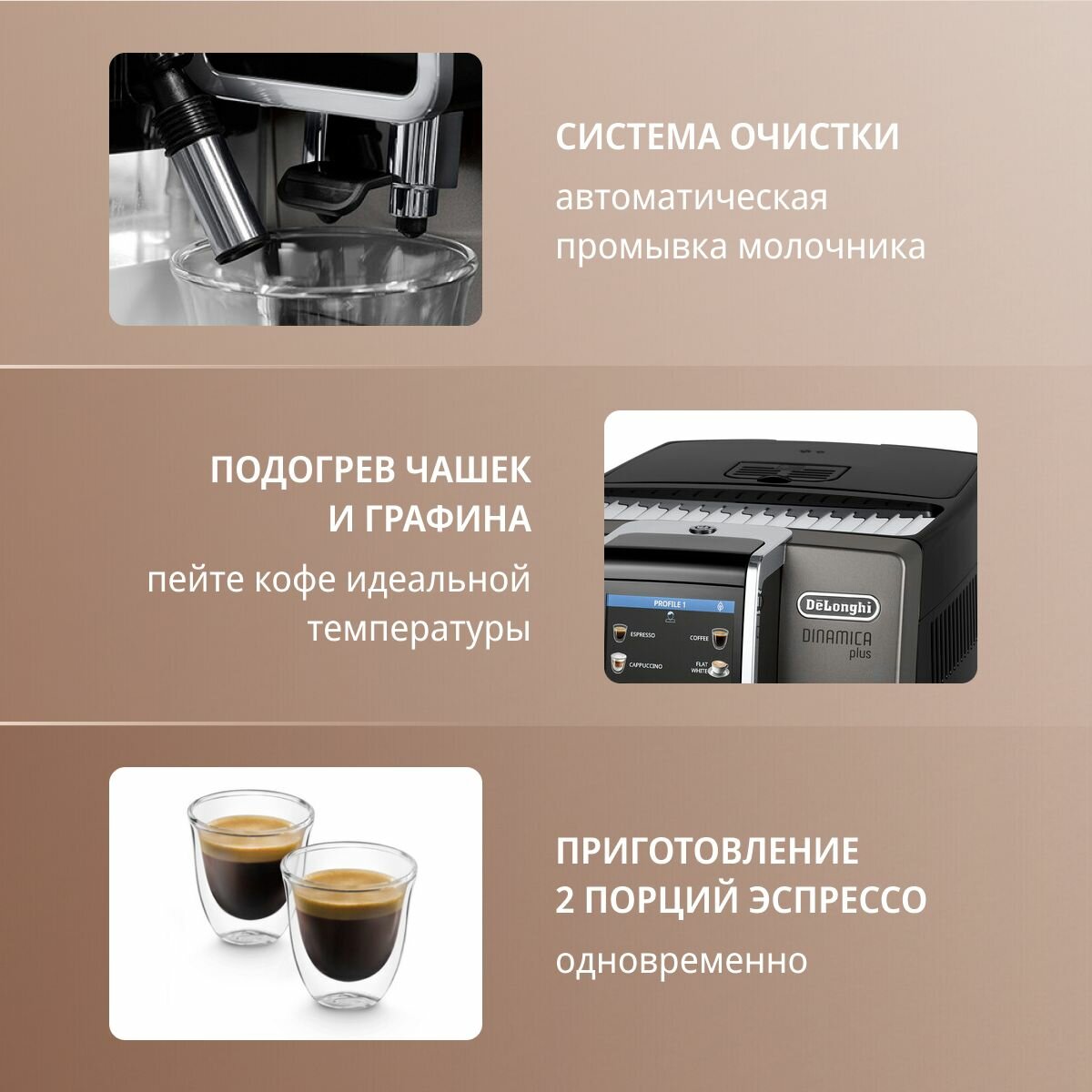Кофемашина автоматическая Delonghi Dinamica Plus ECAM380.85.SB серебристый, черный