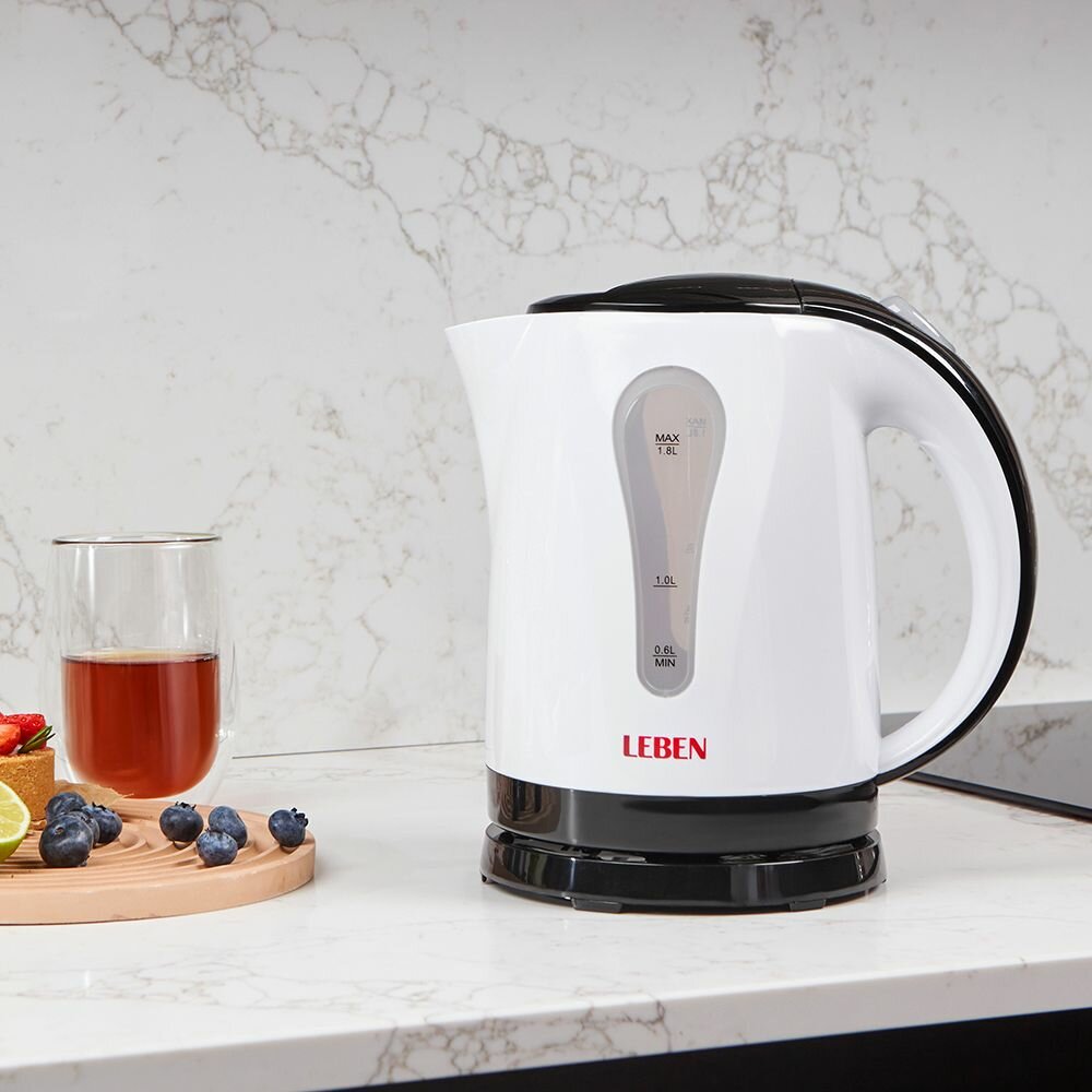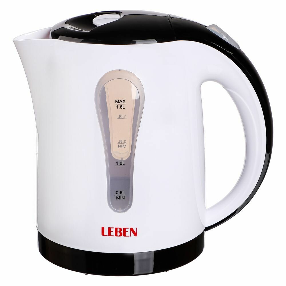 Чайник электрический 1,8 л LEBEN, 1850 Вт, пластик, белый/черный 475-123