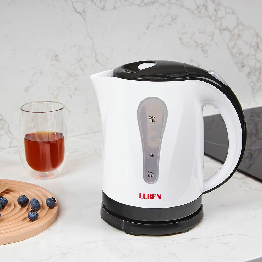 Купить Чайник электрический 1,8 л LEBEN, 1850 Вт, скрытый нагревательный элемент, пластик