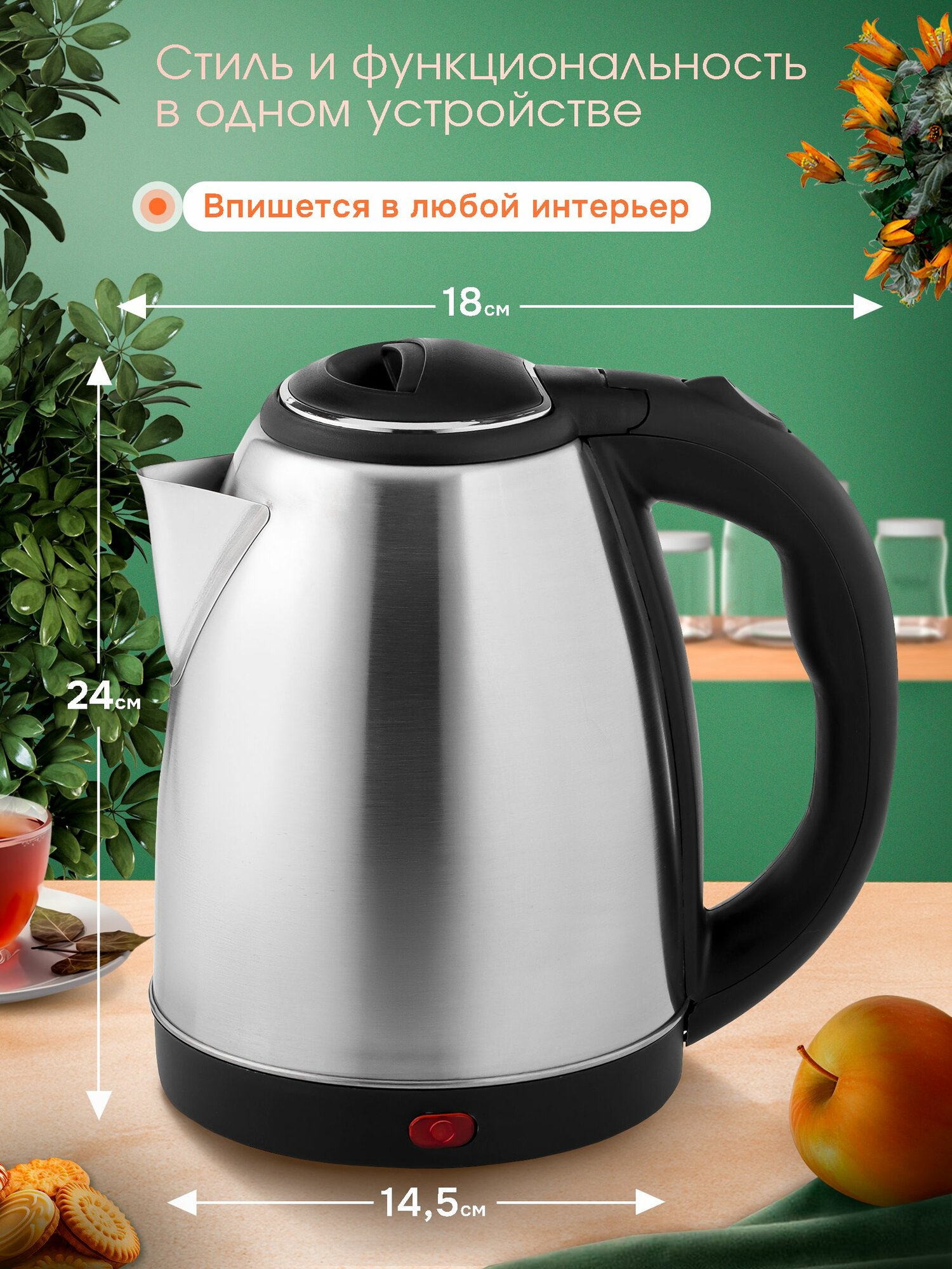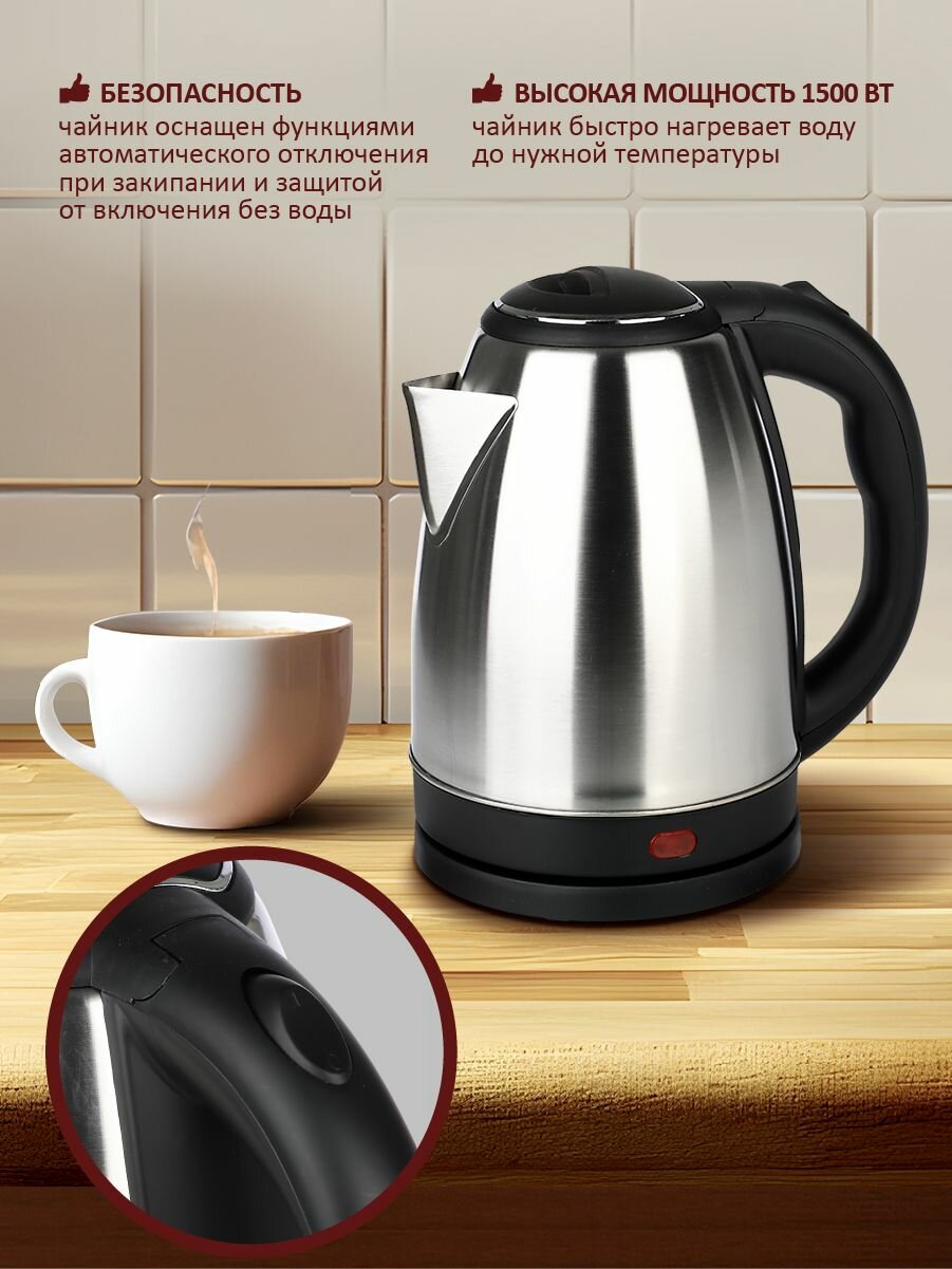 Чайник электрический 1,8 Л, 1500 ВТ, нержавейка/пластик