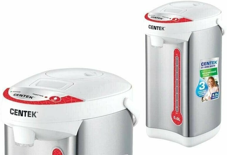 Термопот Centek CT-0082 White, 5л, 850Вт, 3 способа подачи воды, корпус нерж сталь