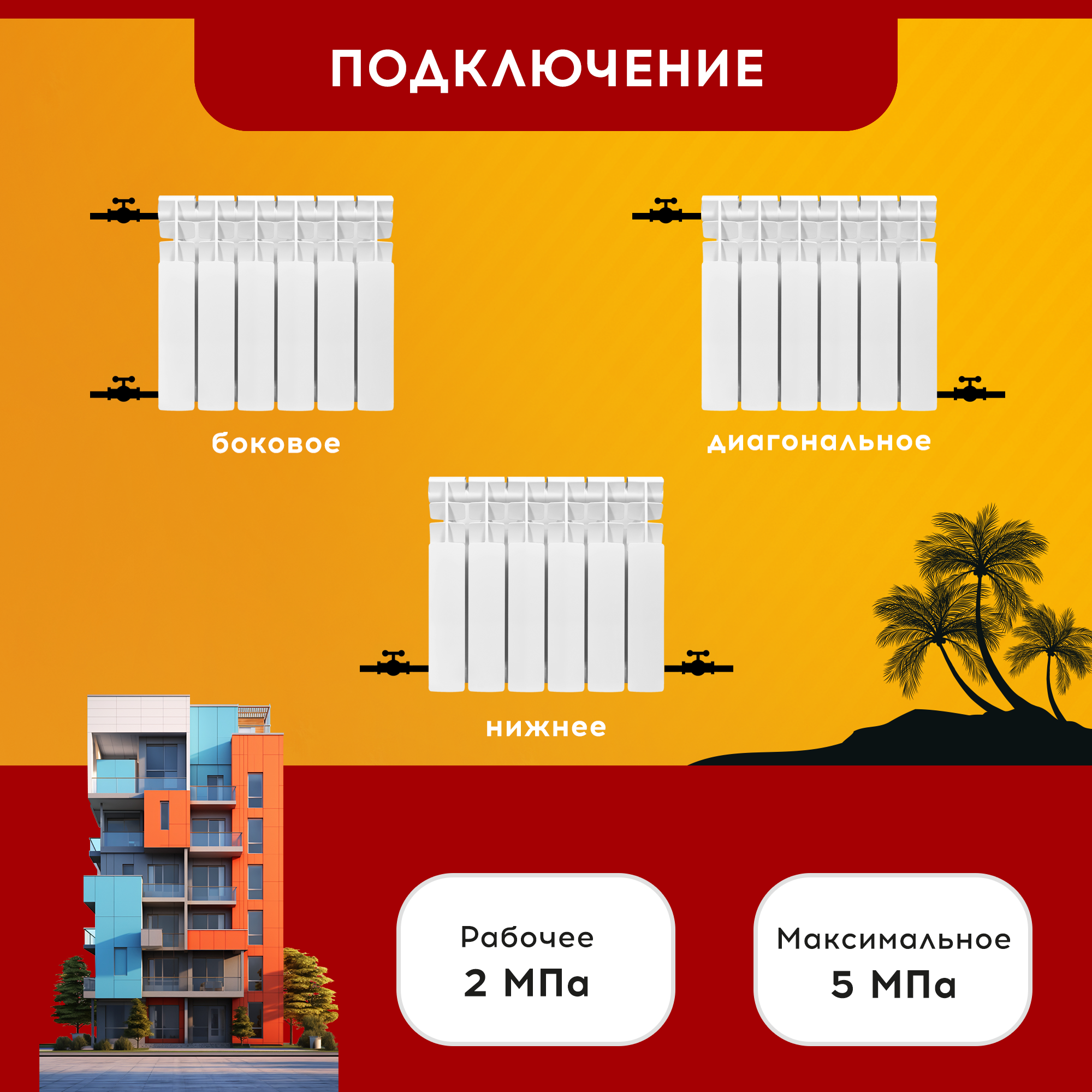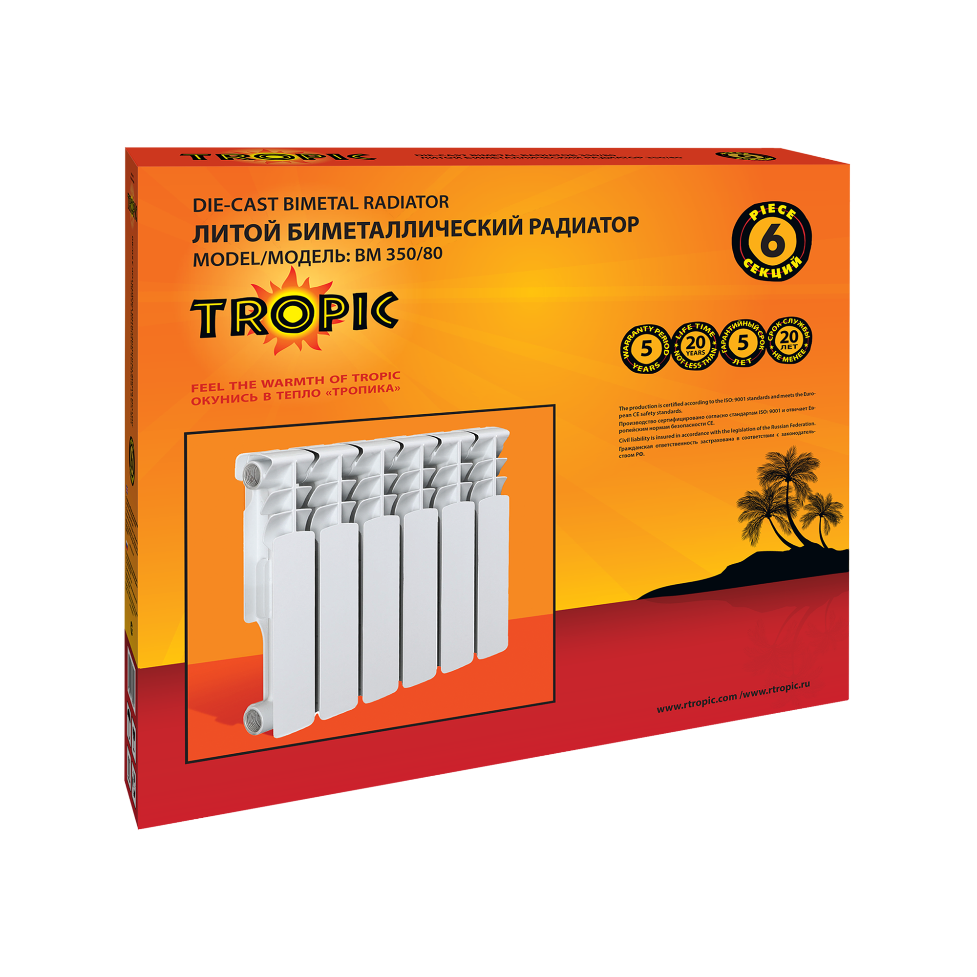 Купить Биметаллический радиатор Tropic 6 секций 350х80 мм, 564 Вт