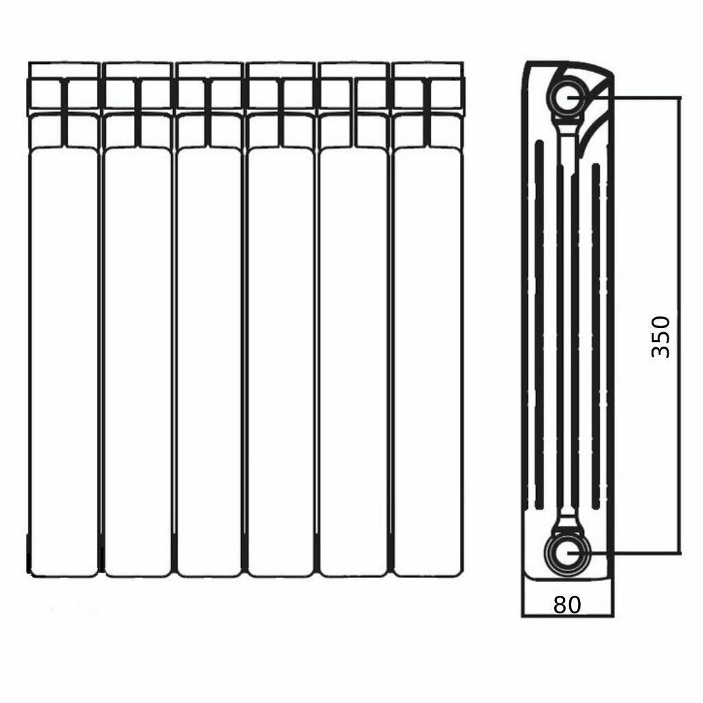 Биметаллический радиатор Tropic 6 секций 350х80 мм, 564 Вт