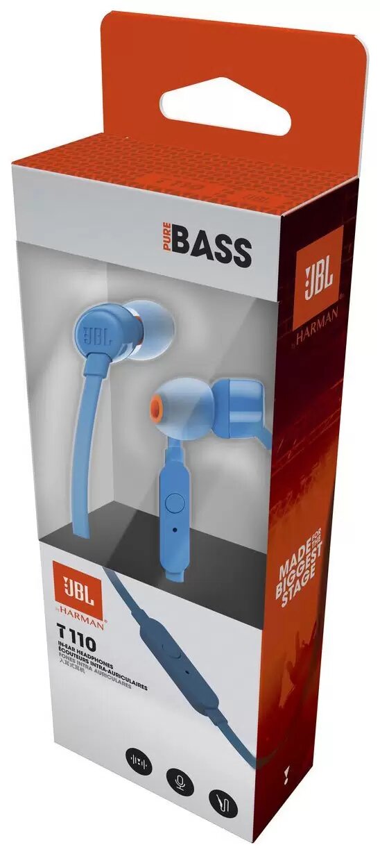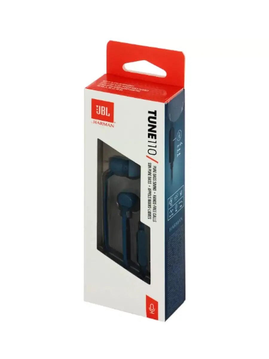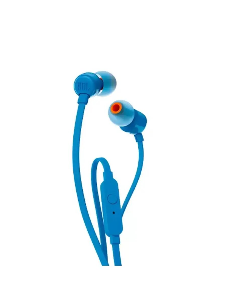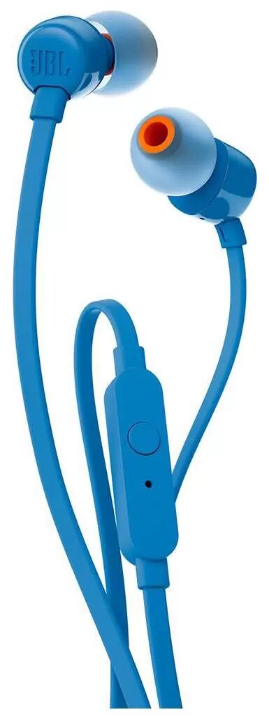 Проводные наушники JBL TUNE 110 blue / 3.5 мм / вкладыши / звук PureBass Sound, Stereo / внутриканальные, микрофон / плоский кабель с защитой от спутывания