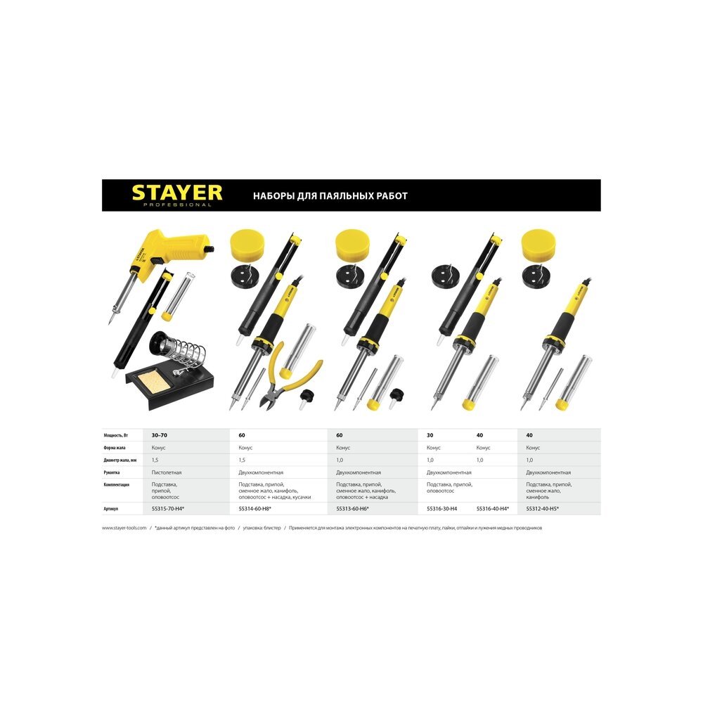 Купить Набор для паяльных работ STAYER Proterm 60Вт 8 предметов 55314-60-H8