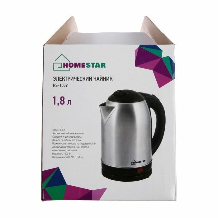 чайник HOMESTAR HS-1009 1500Вт, 1,8л сталь
