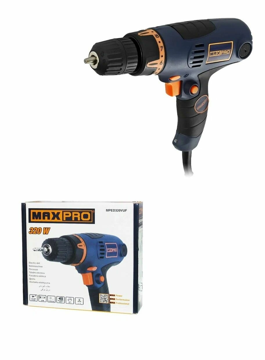 Дрель-шуруповерт Maxpro MPED320VUF, 320 Вт, без аккумулятора